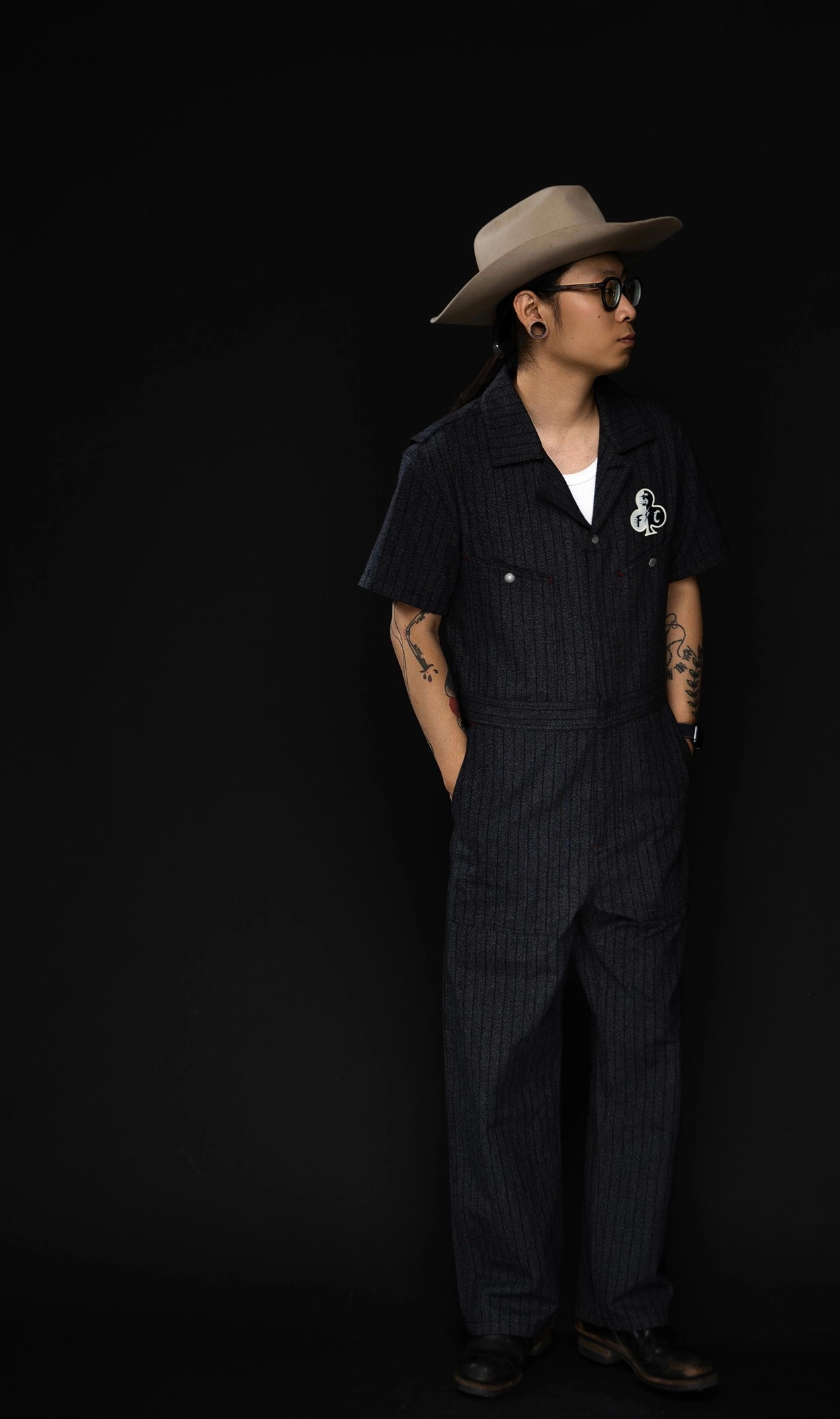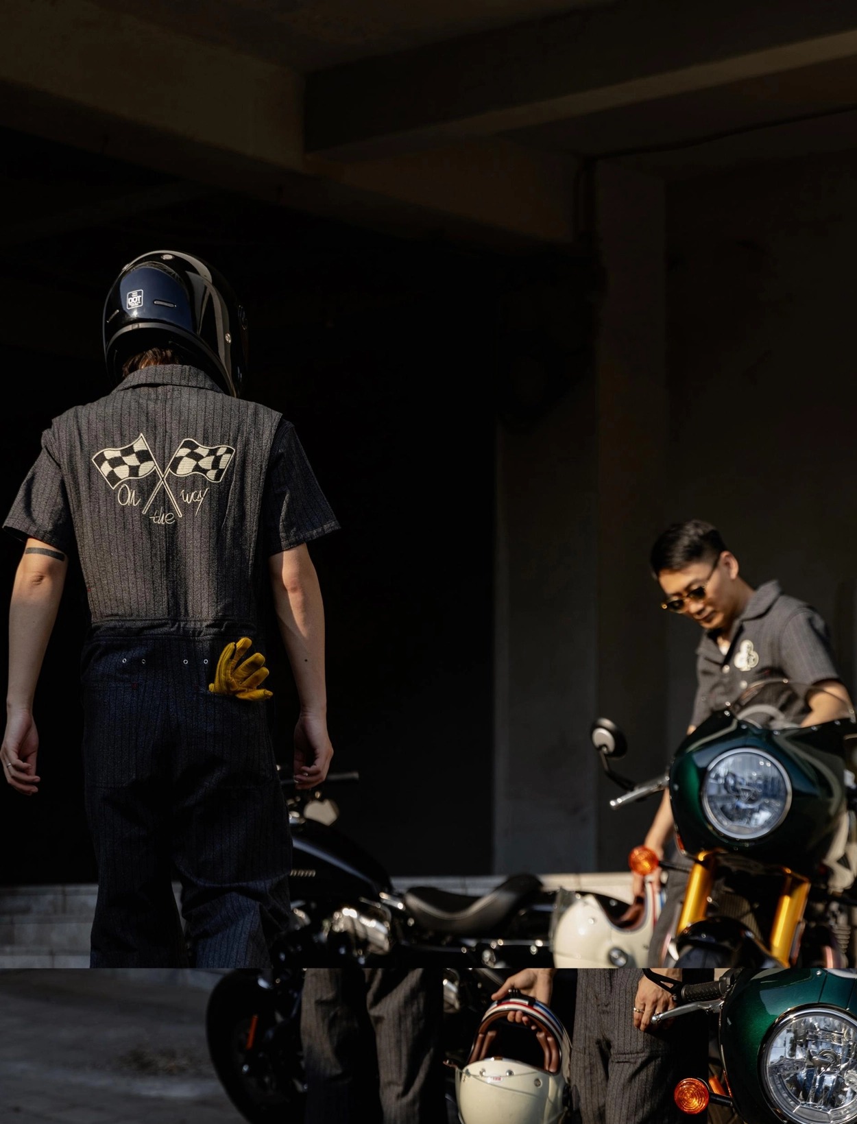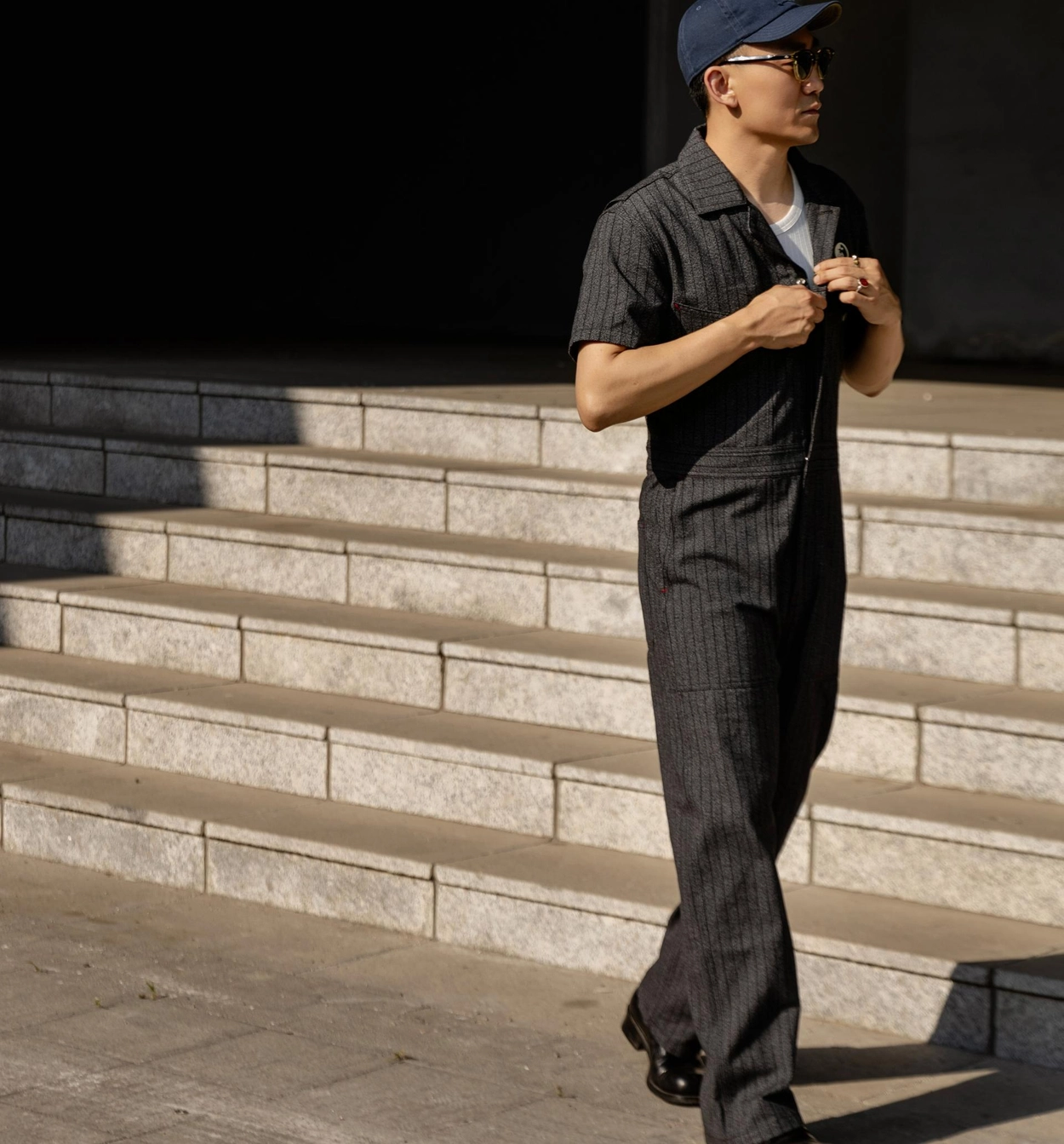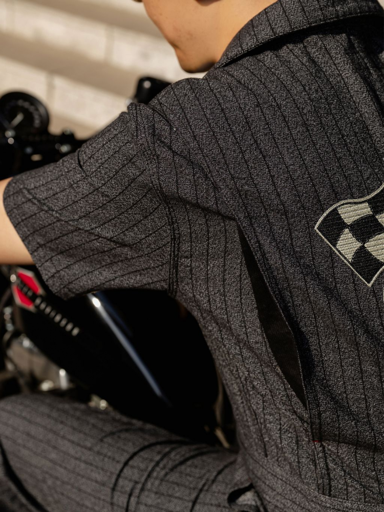[슈가펑크] 페퍼 솔트 스트라이프 레이싱 반팔 슈트