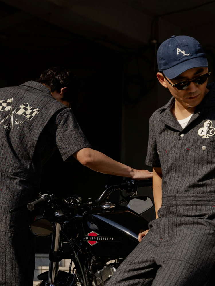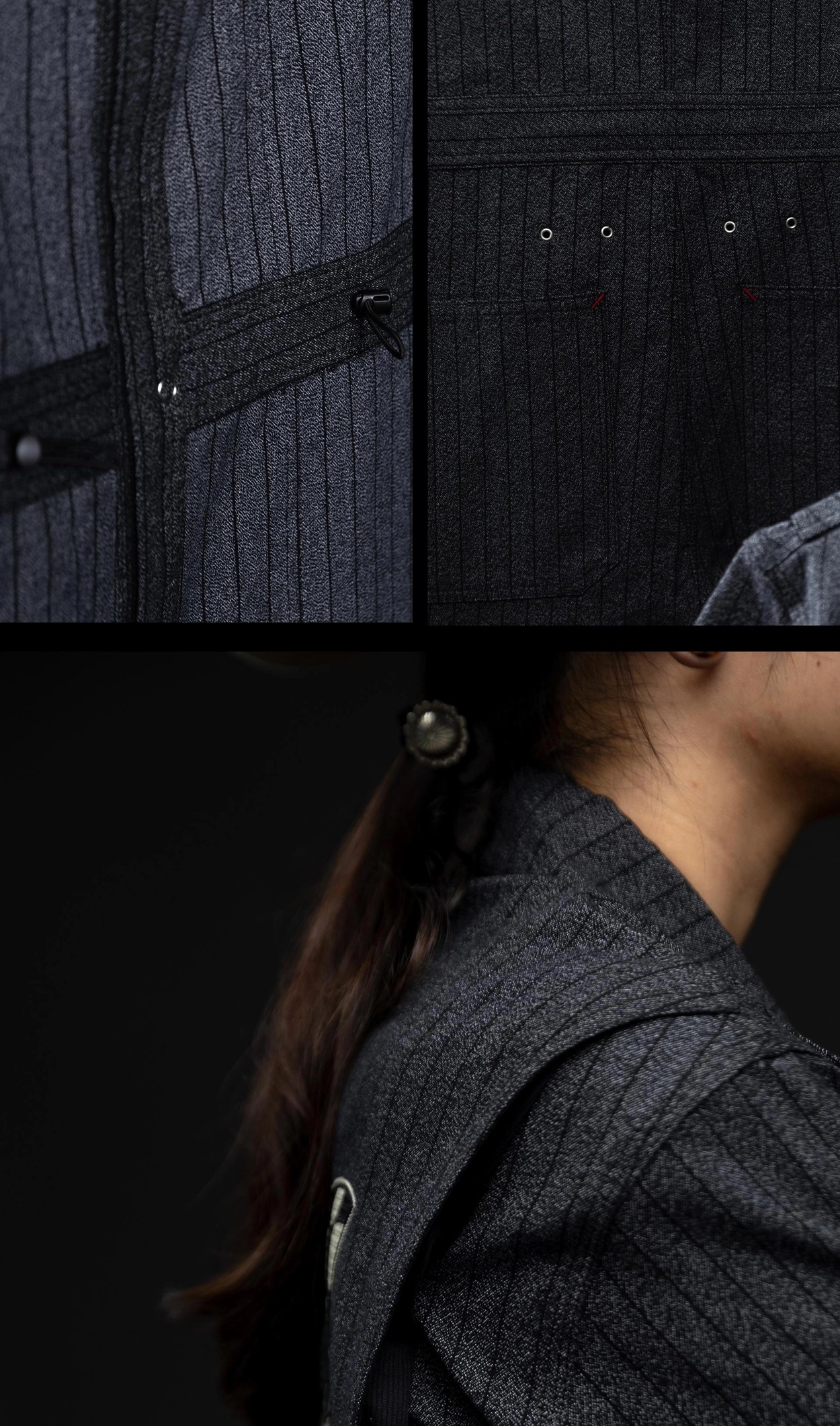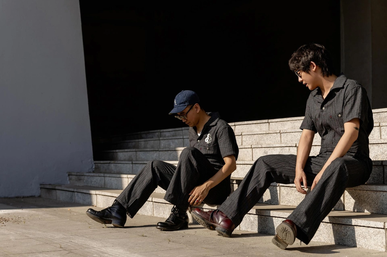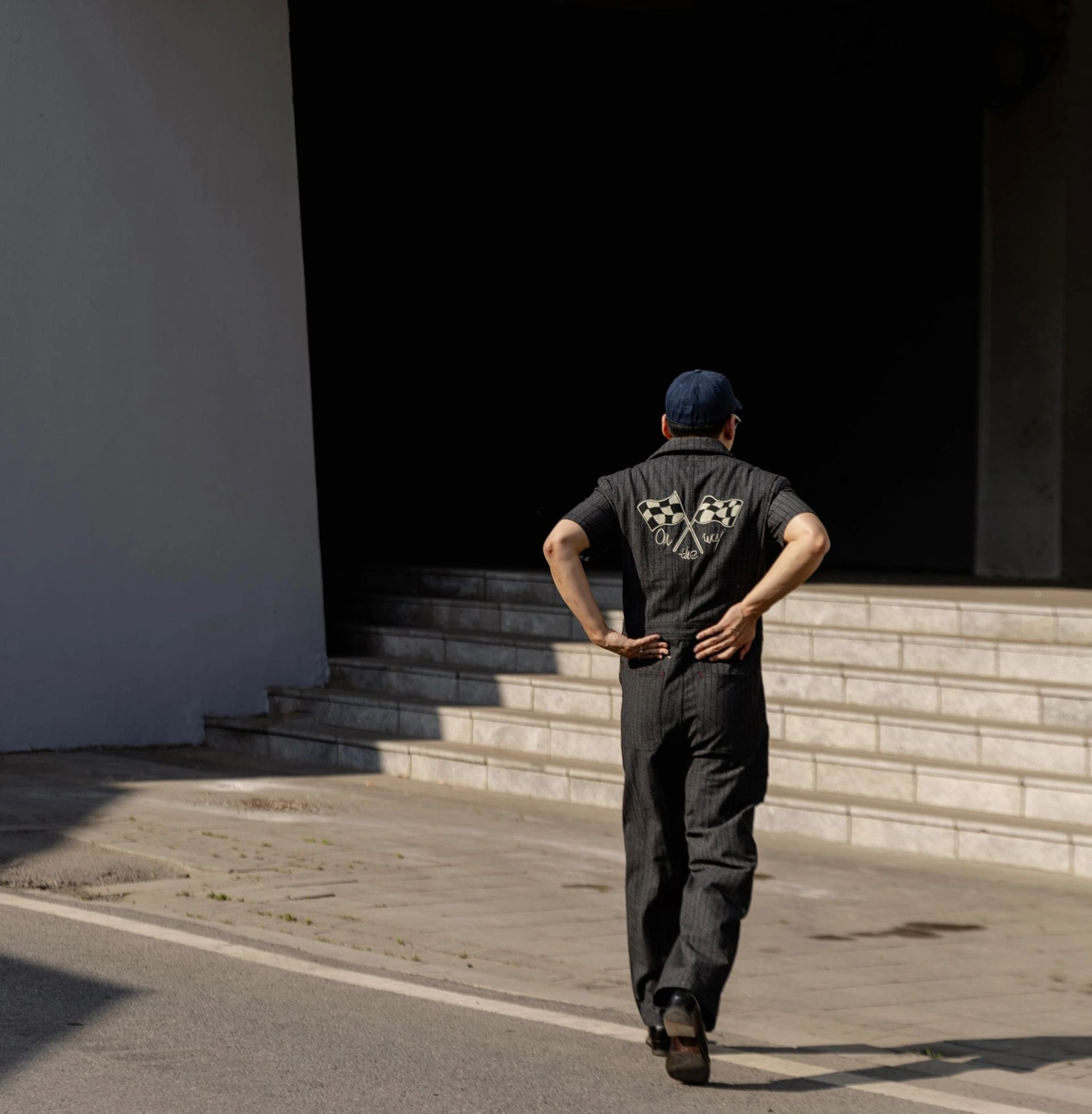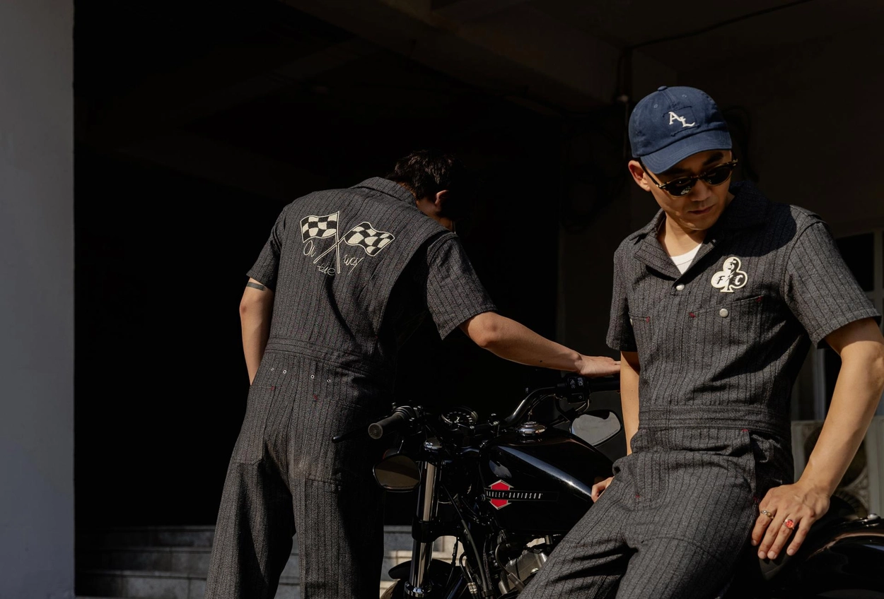 [슈가펑크] 페퍼 솔트 스트라이프 레이싱 반팔 슈트