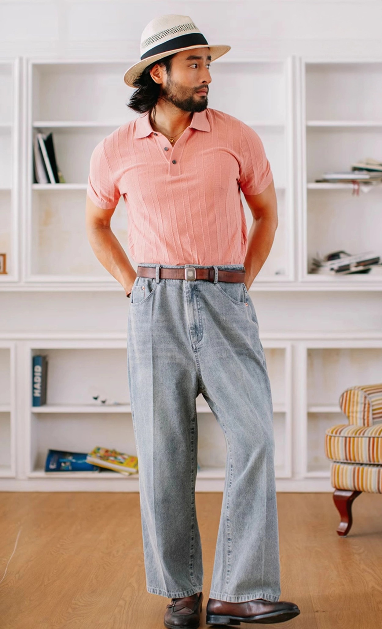 [소린] 썸머 비즈니스 스트라이프 폴로 니트