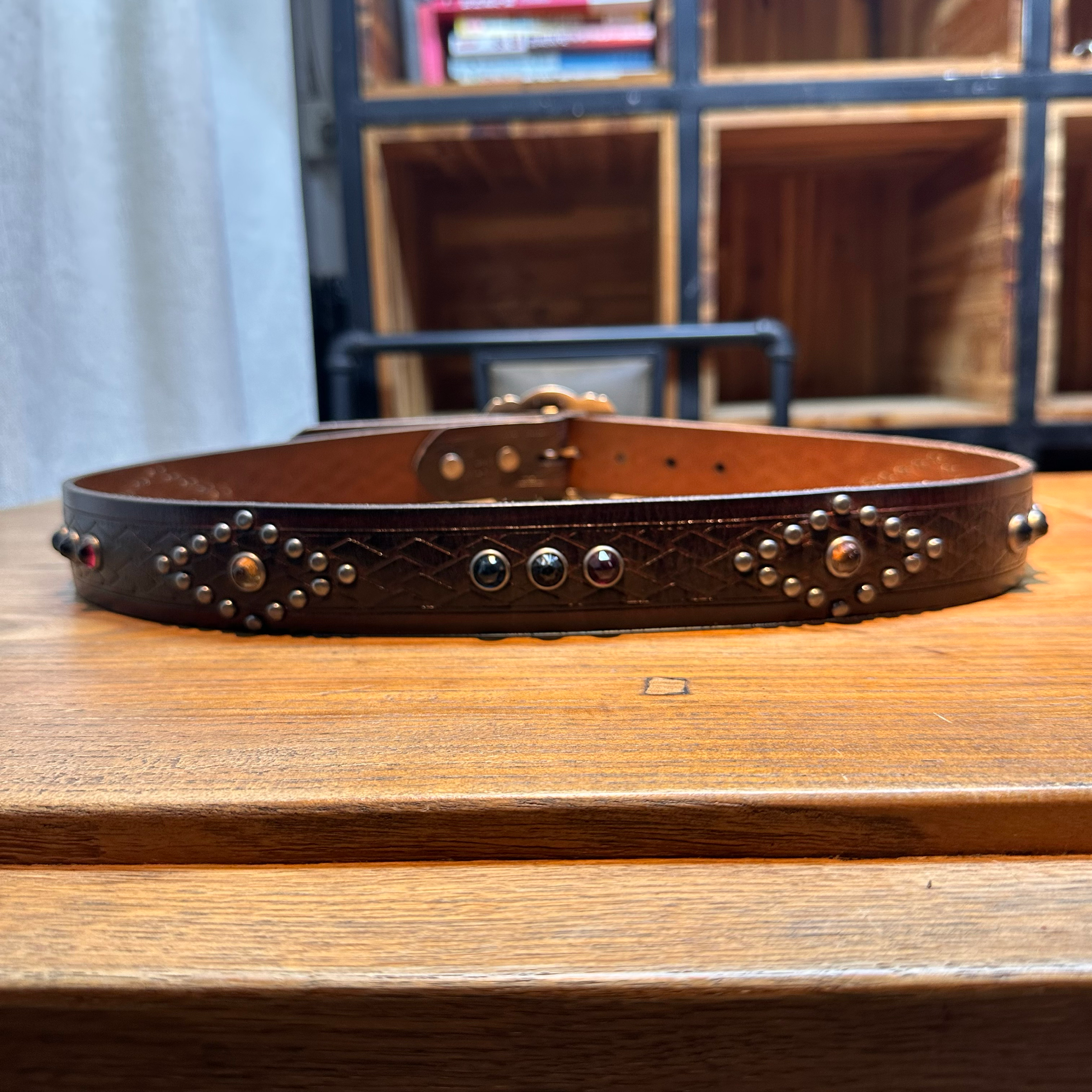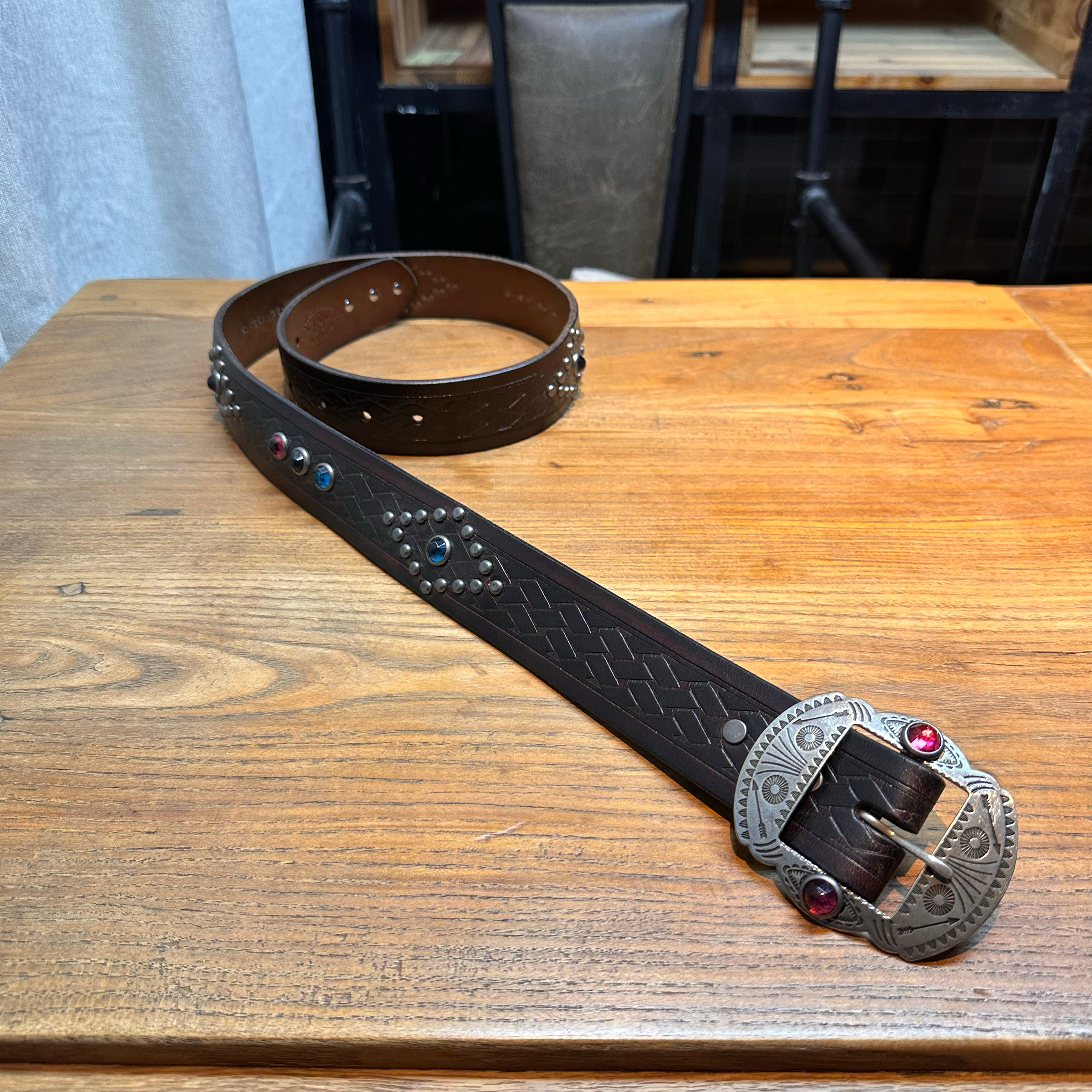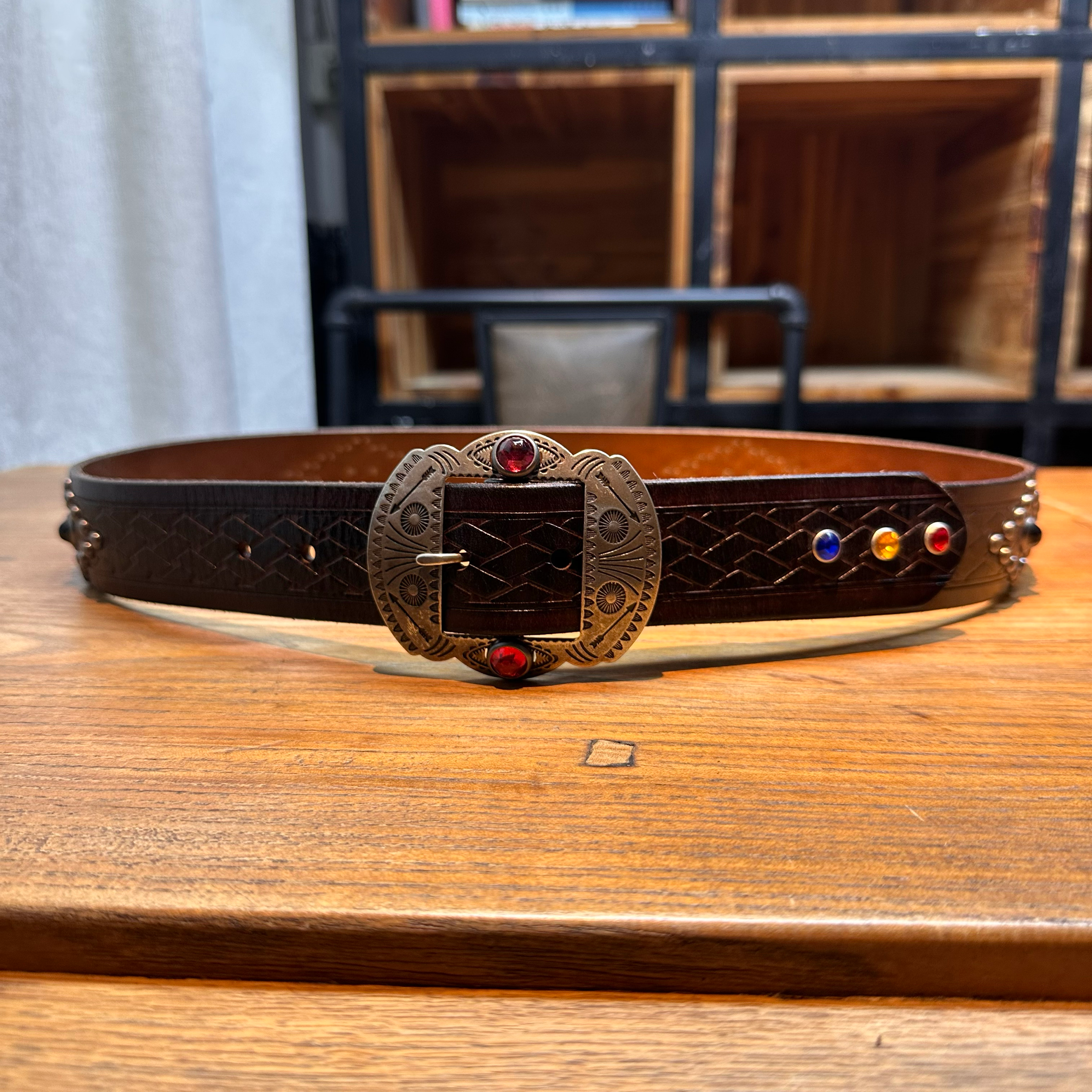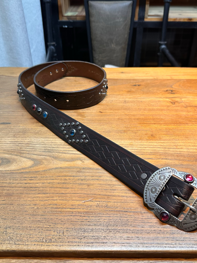 [155클로딩] 브라운 나바호 무드 스터드 벨트