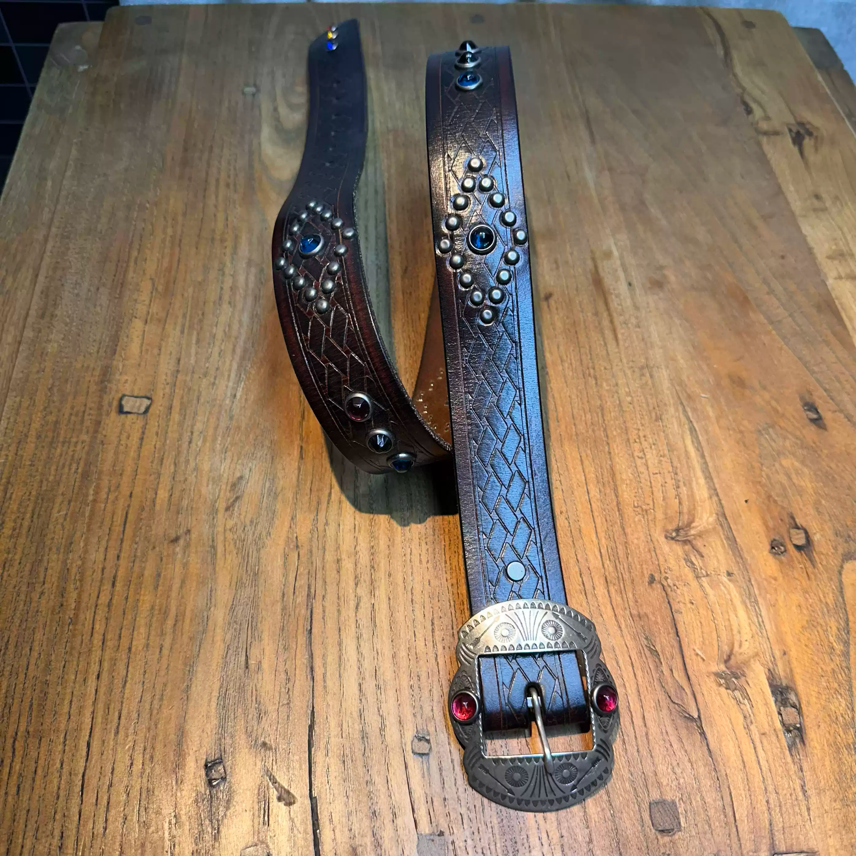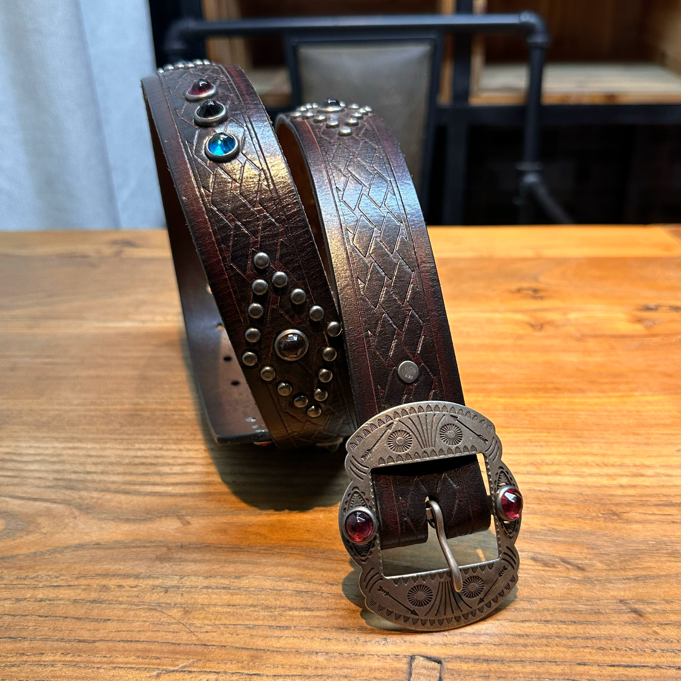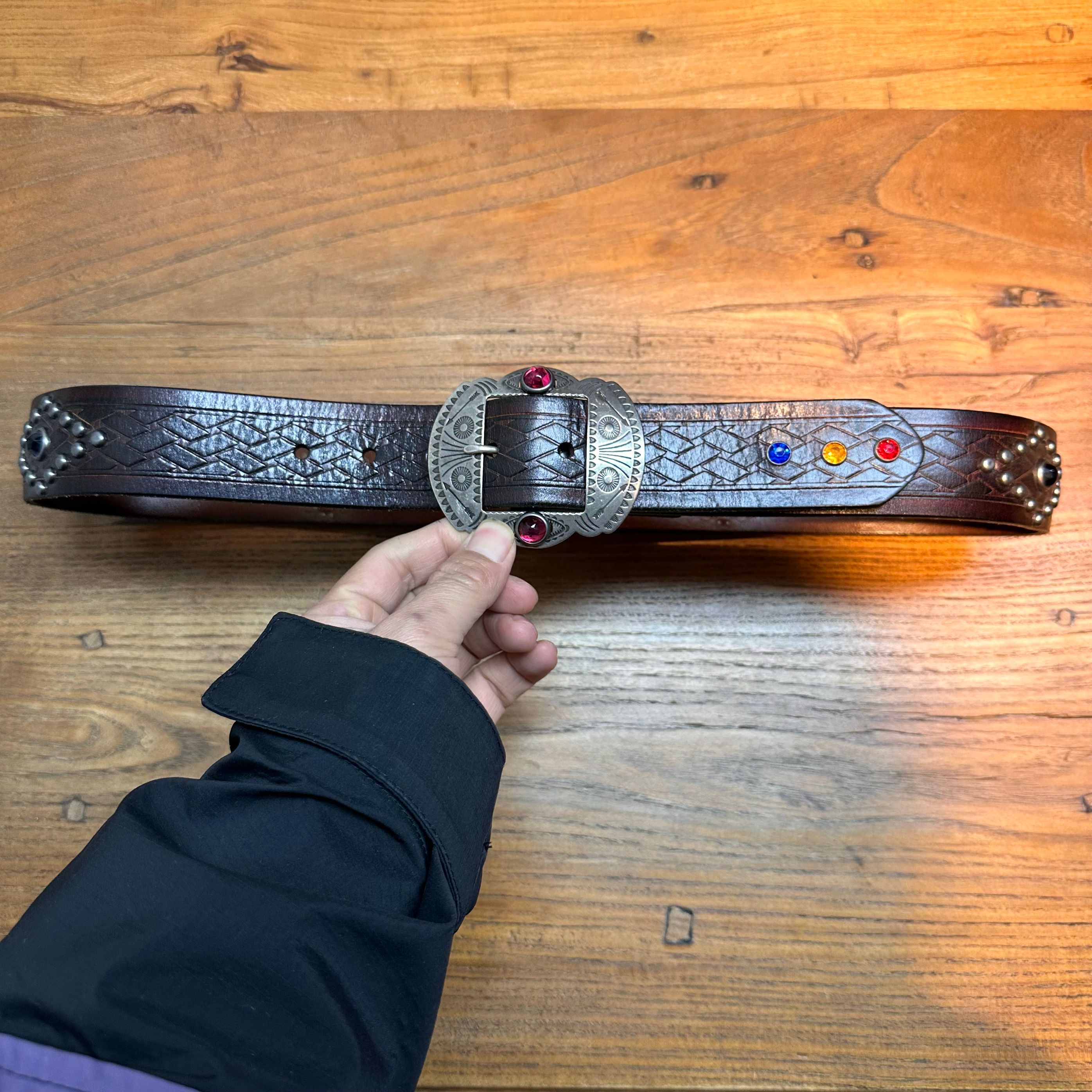 [155클로딩] 브라운 나바호 무드 스터드 벨트