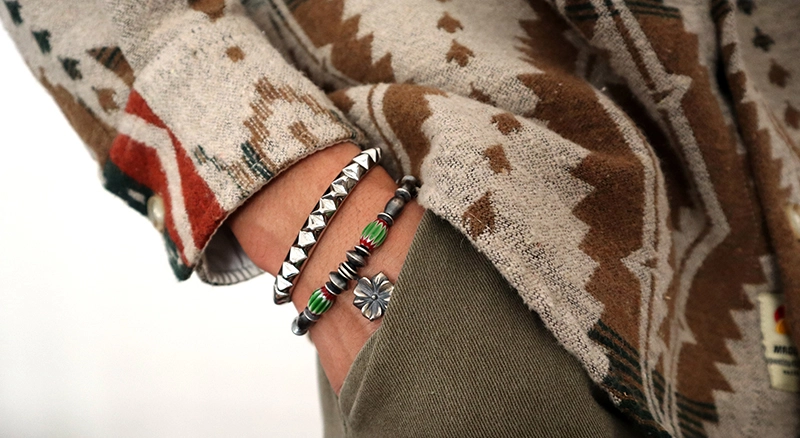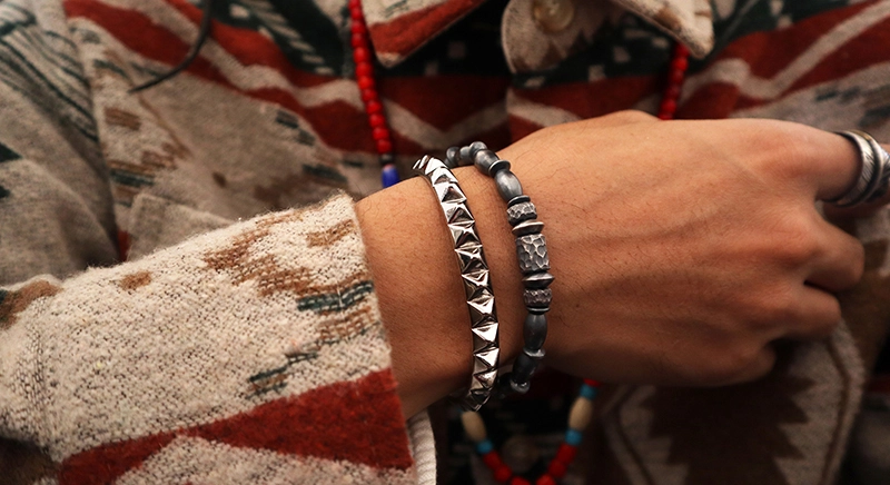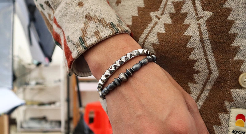 [떠그침프] 925 실 핸드메이드 레이어드 스터드 팔찌
