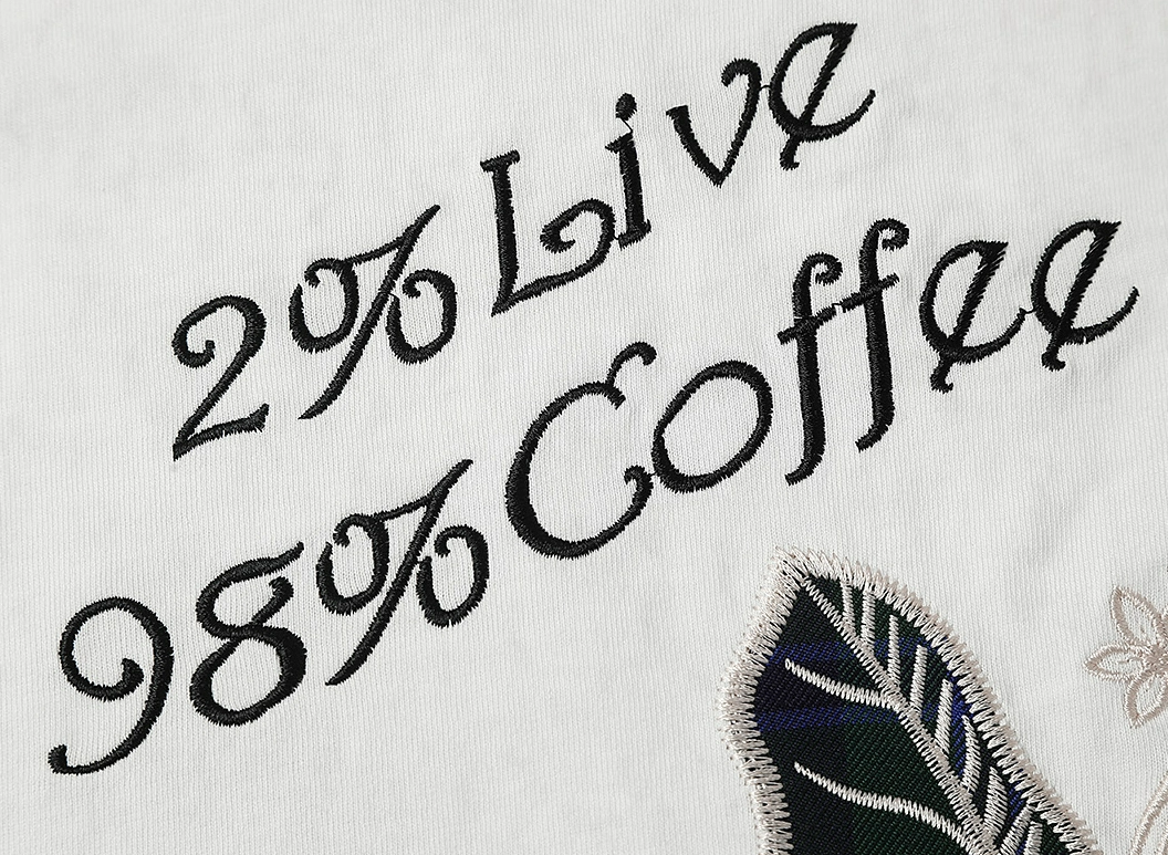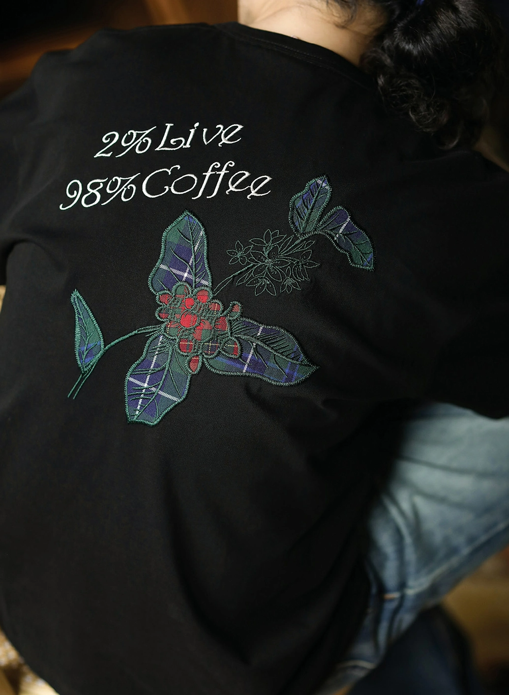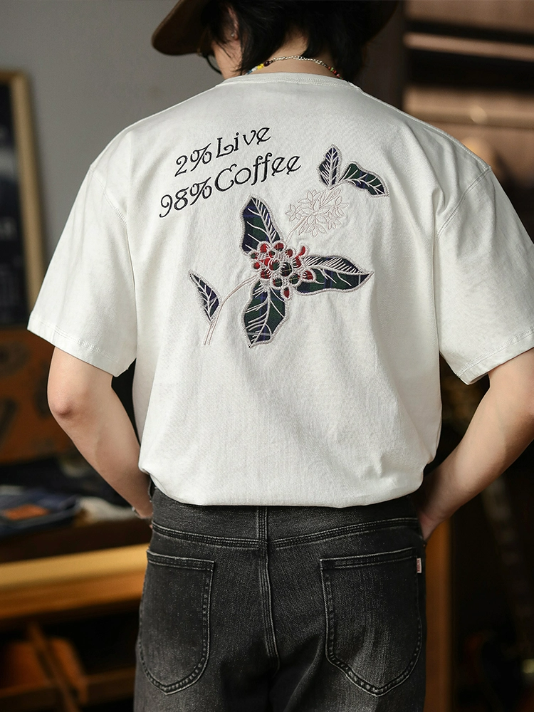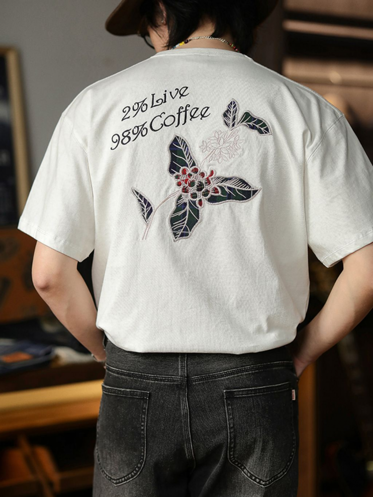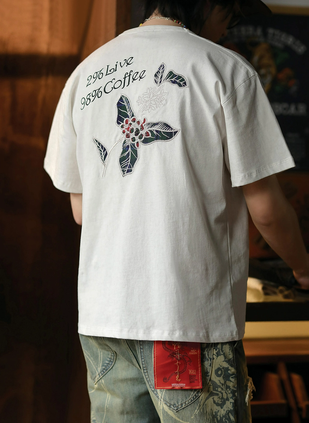 [엠비비카] 260g 아플리케 라이프엔 커피 자수 디테일 반팔 티셔츠