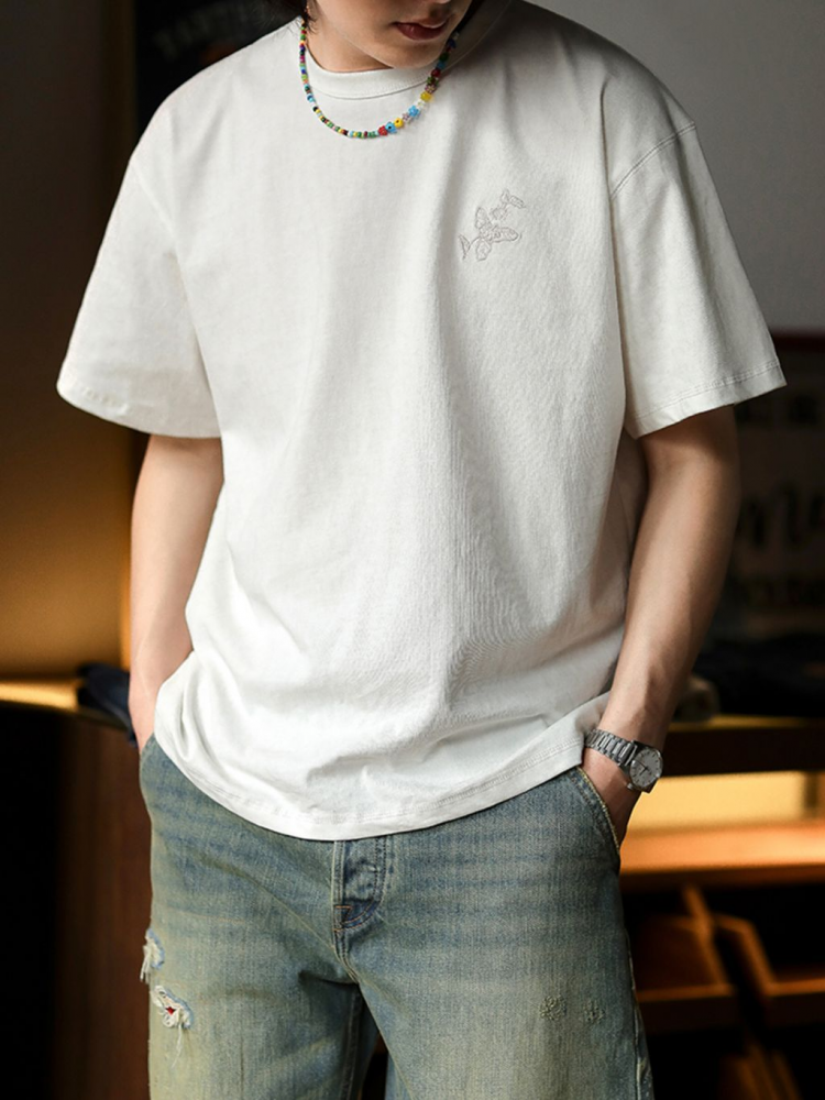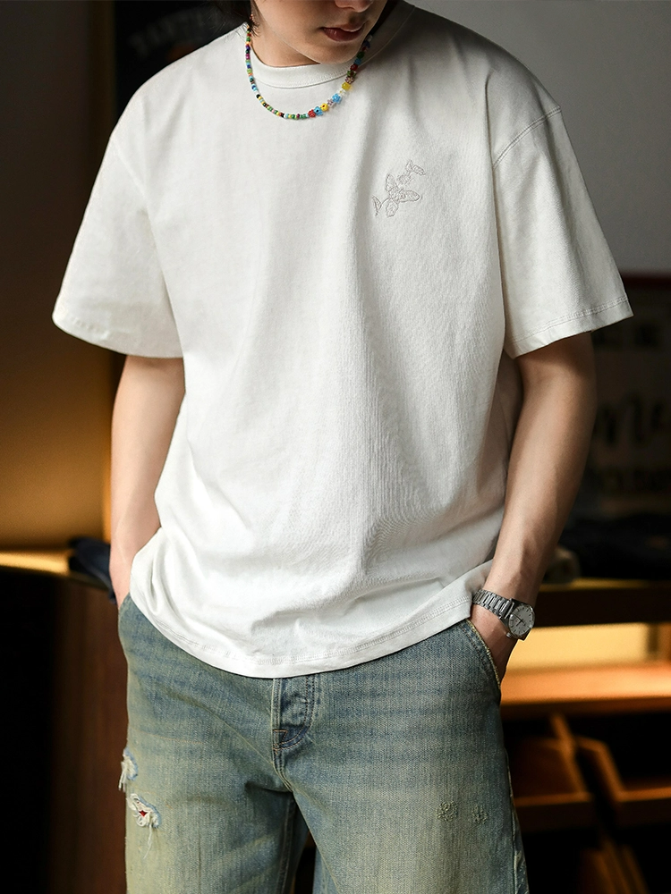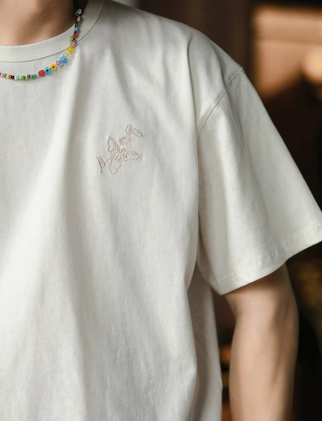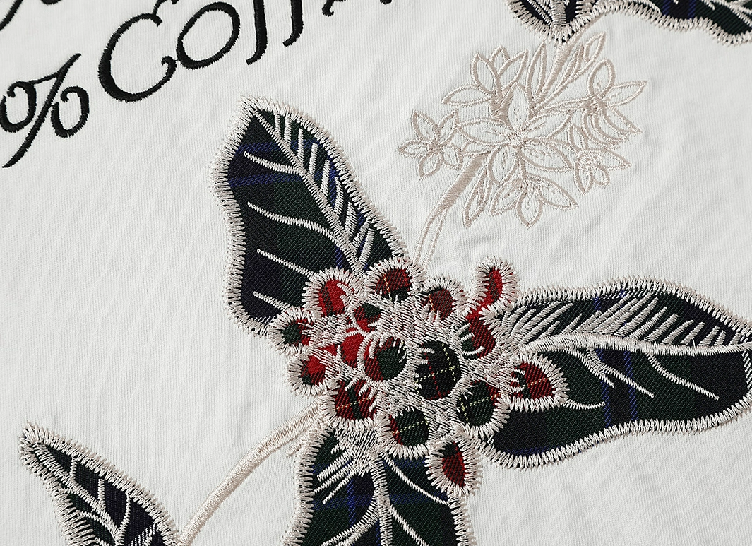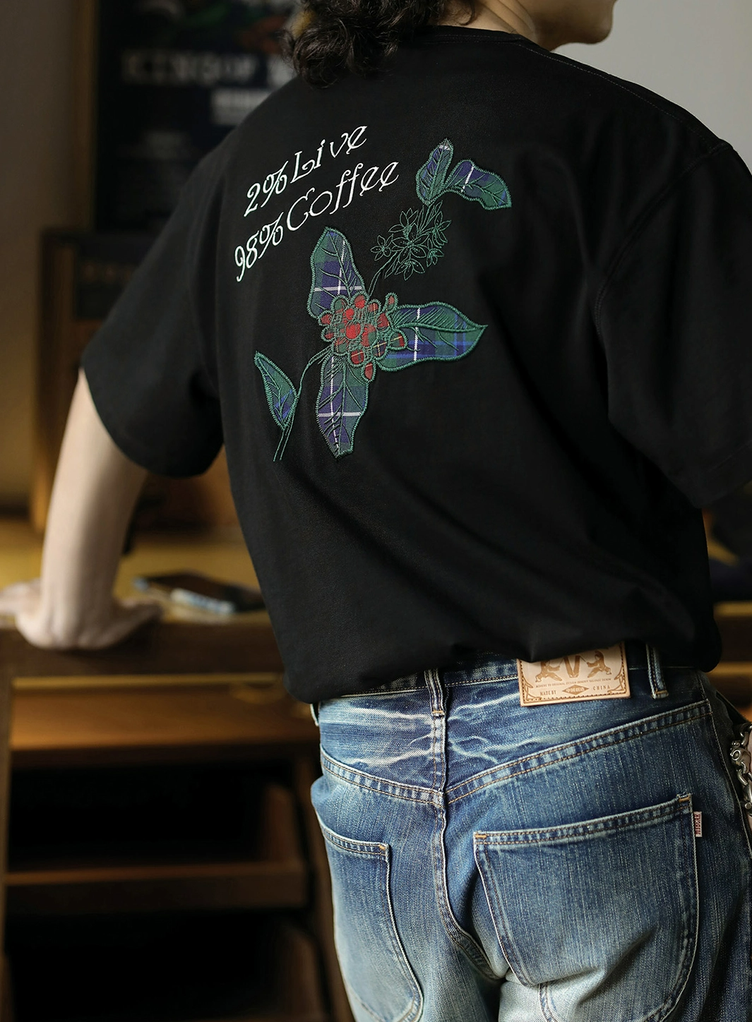 [엠비비카] 260g 아플리케 라이프엔 커피 자수 디테일 반팔 티셔츠