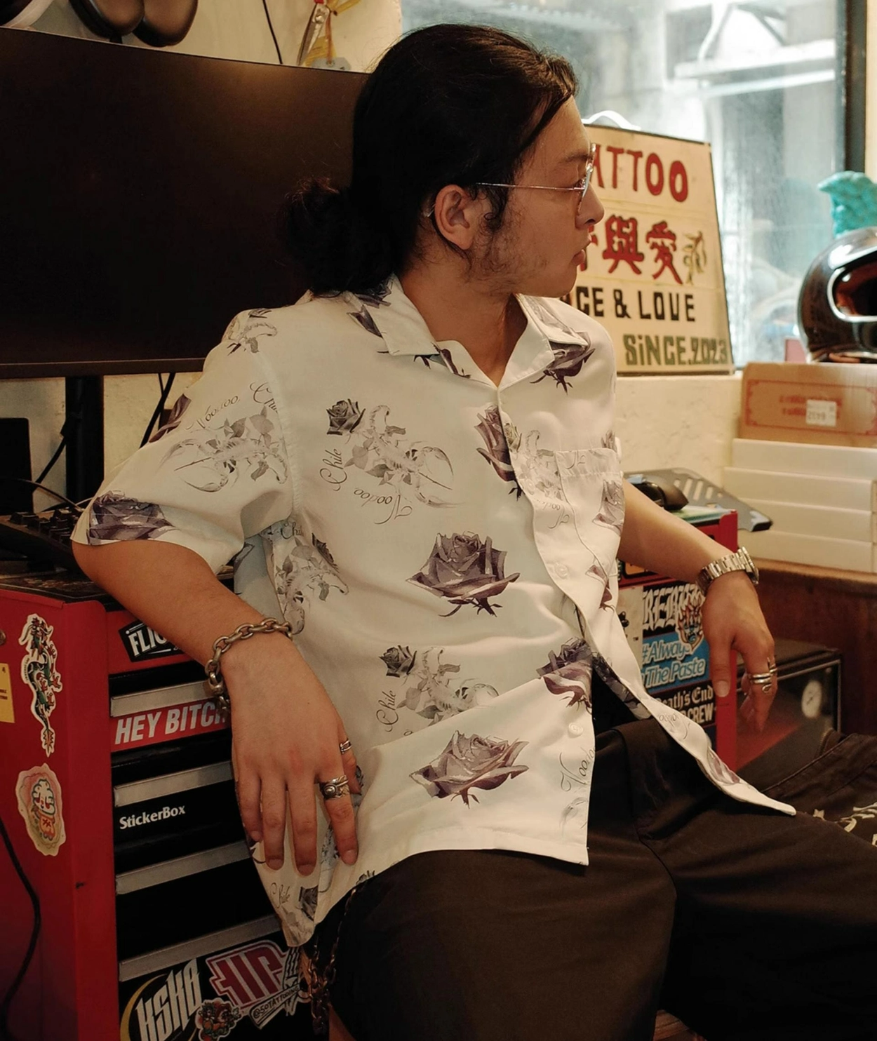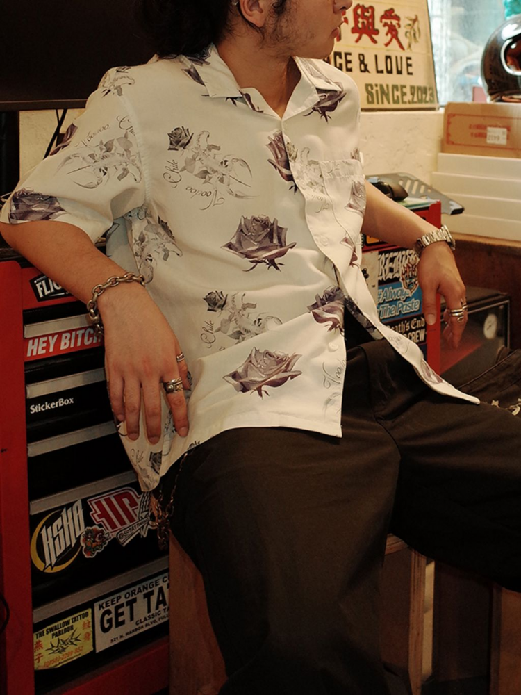 [엠비비카] 텐셀 로즈엔 스콜피온 그래픽 하와이안 스타일 반팔 셔츠