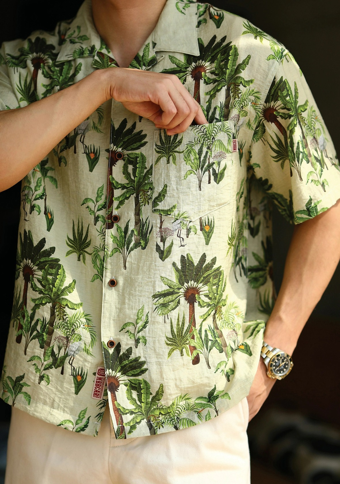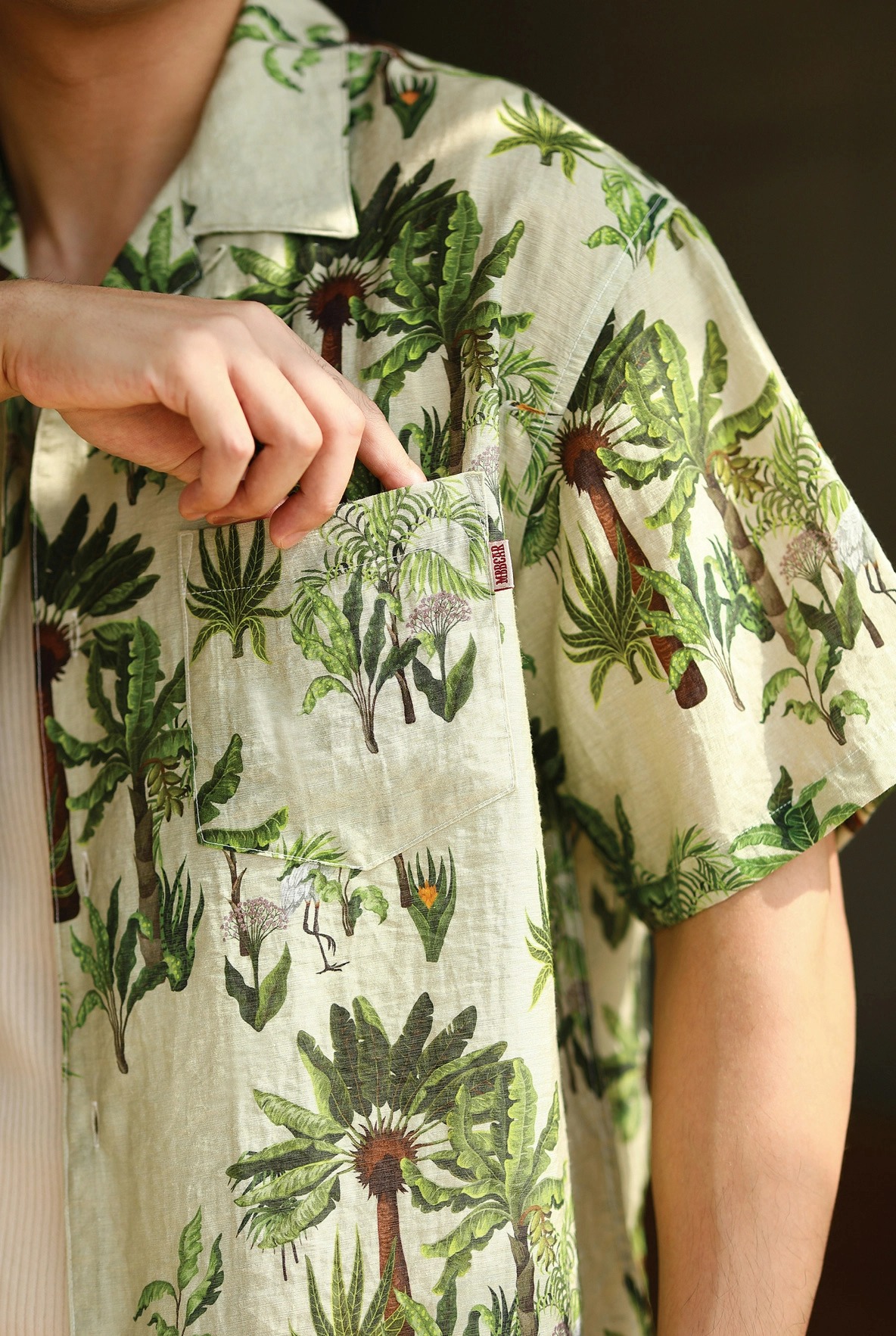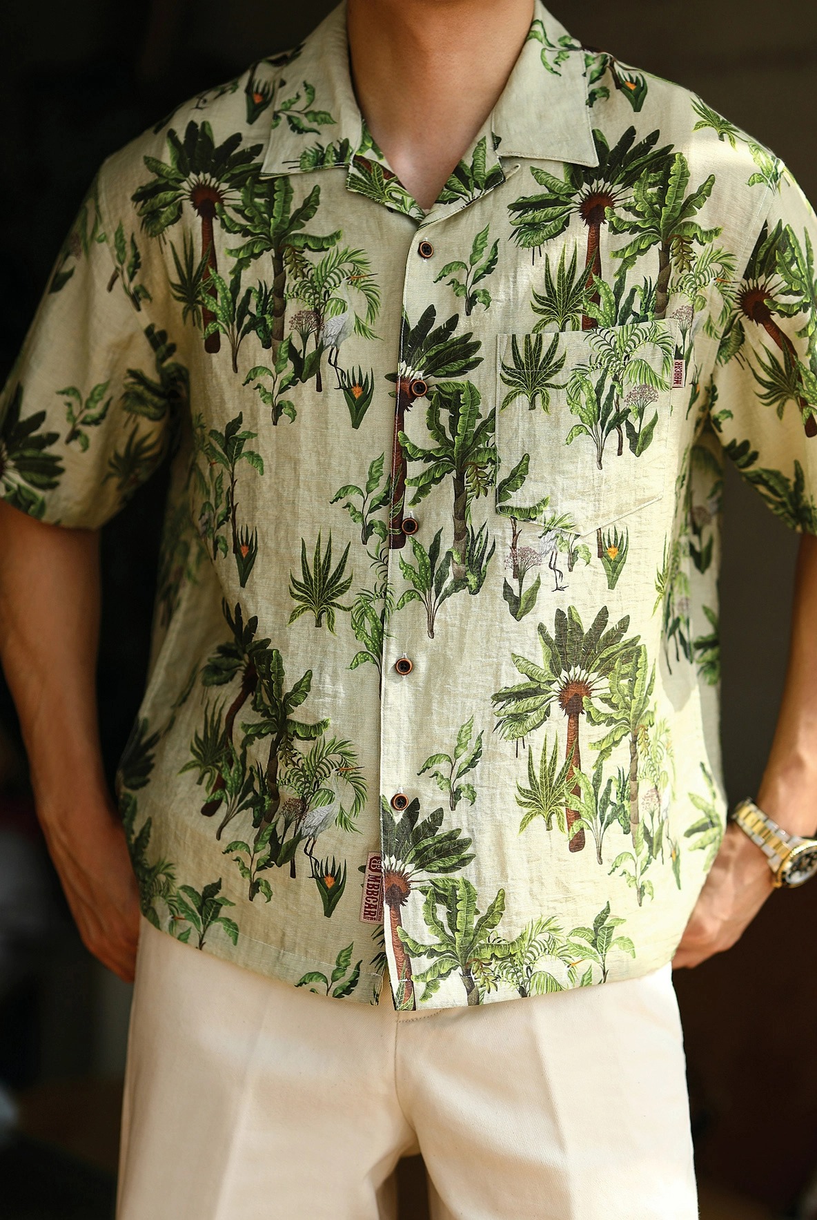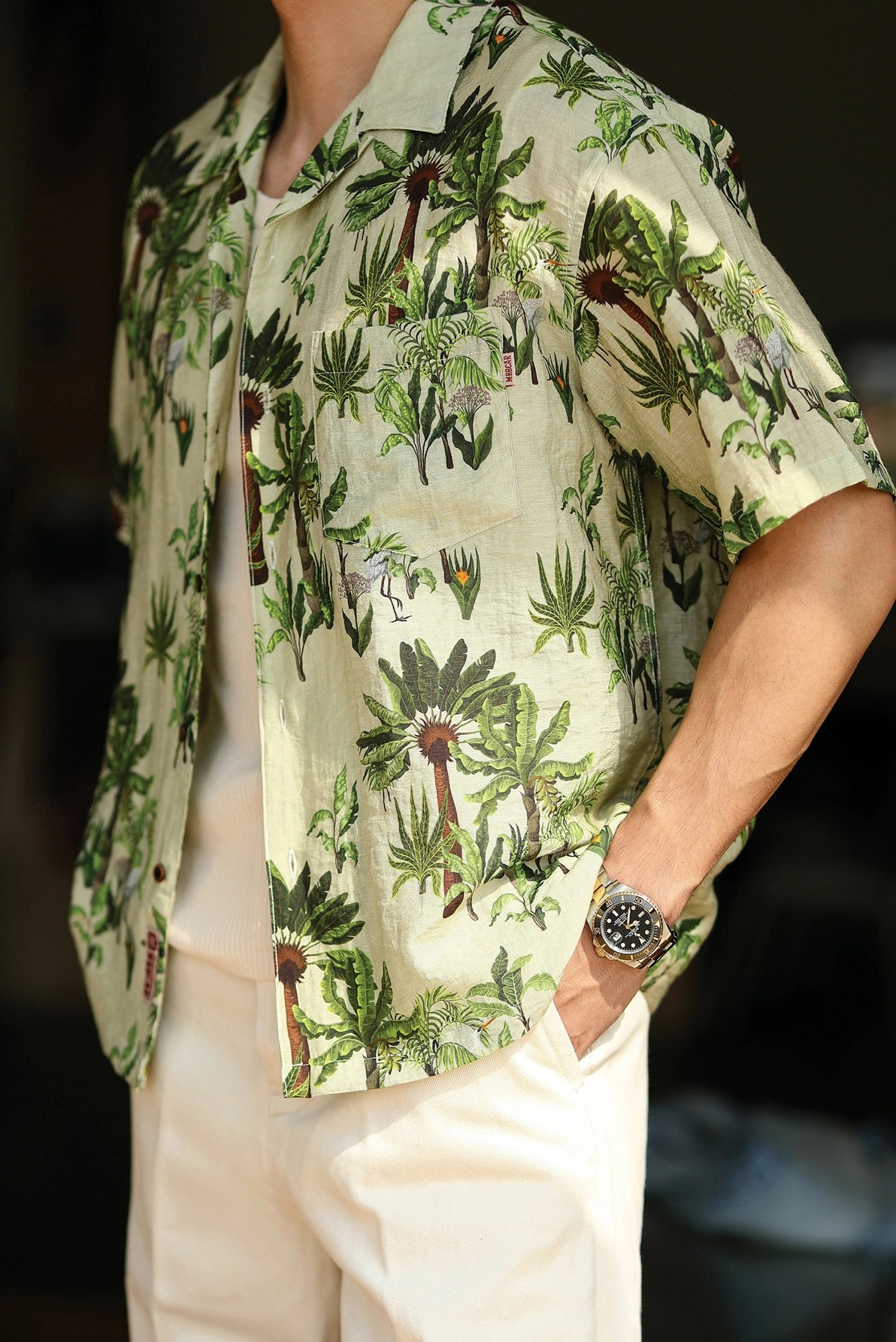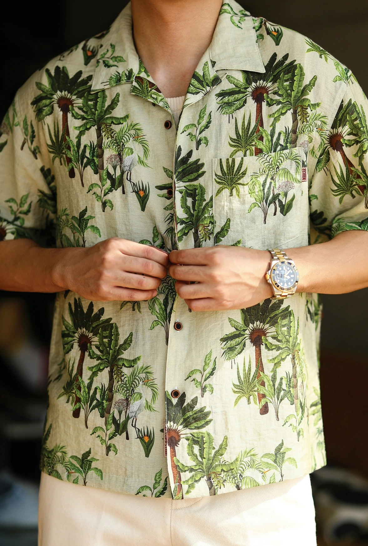 [엠비비카] 아마바나나 그래픽 쿠바 넥 하와이안 스타일 반팔 셔츠