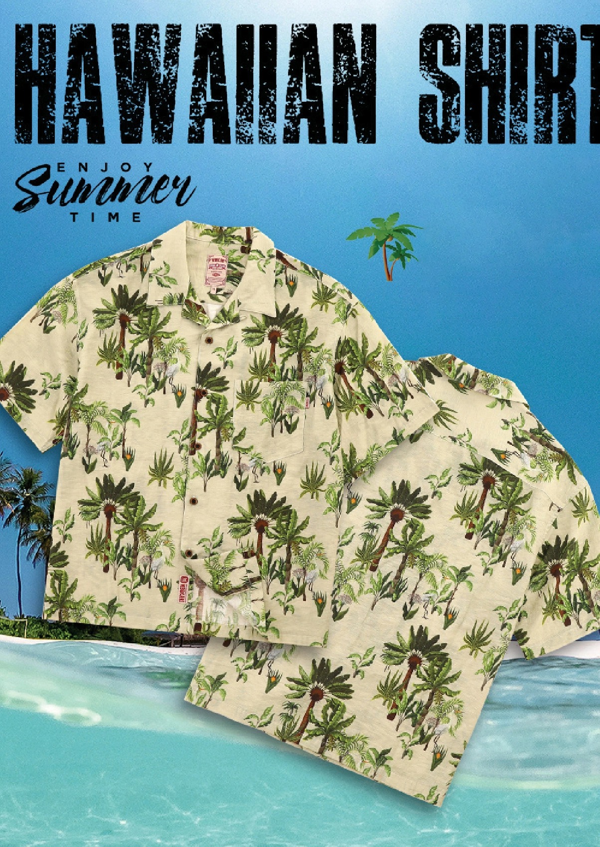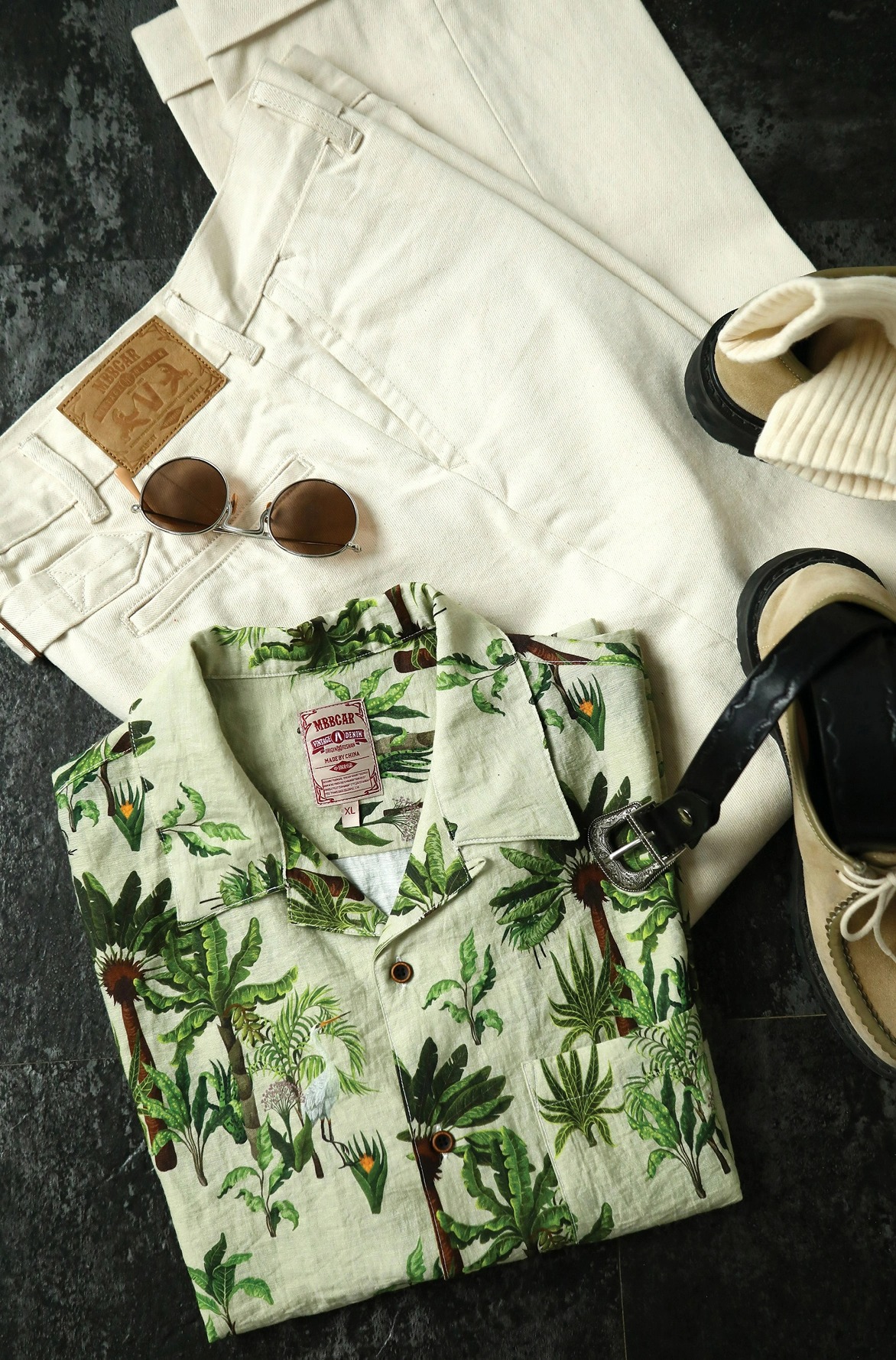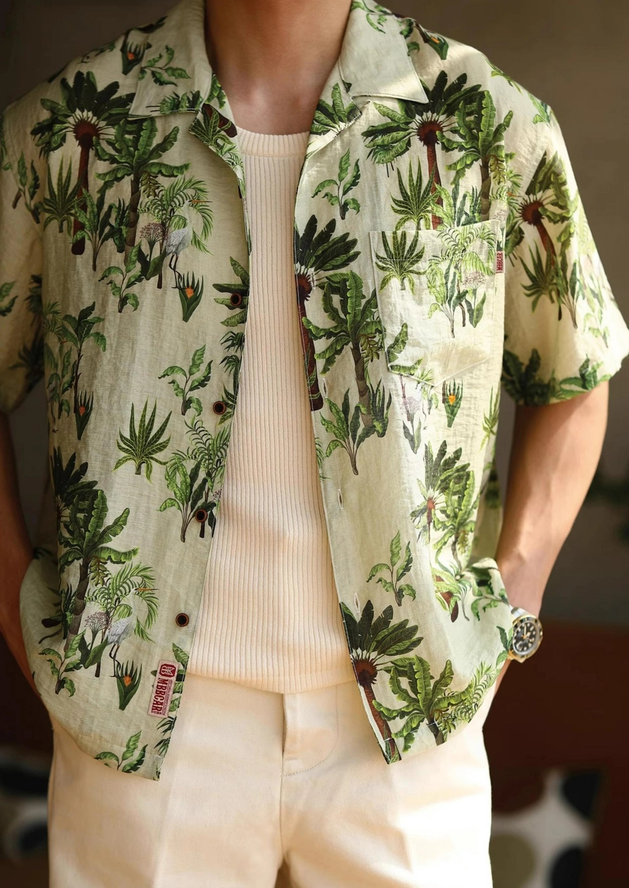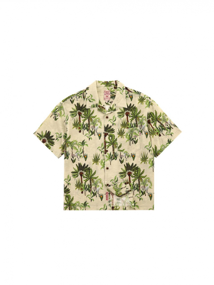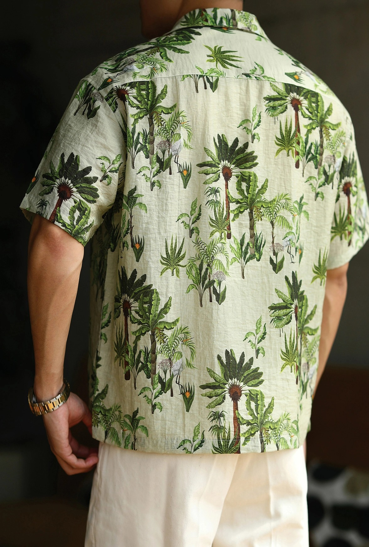 [엠비비카] 아마바나나 그래픽 쿠바 넥 하와이안 스타일 반팔 셔츠