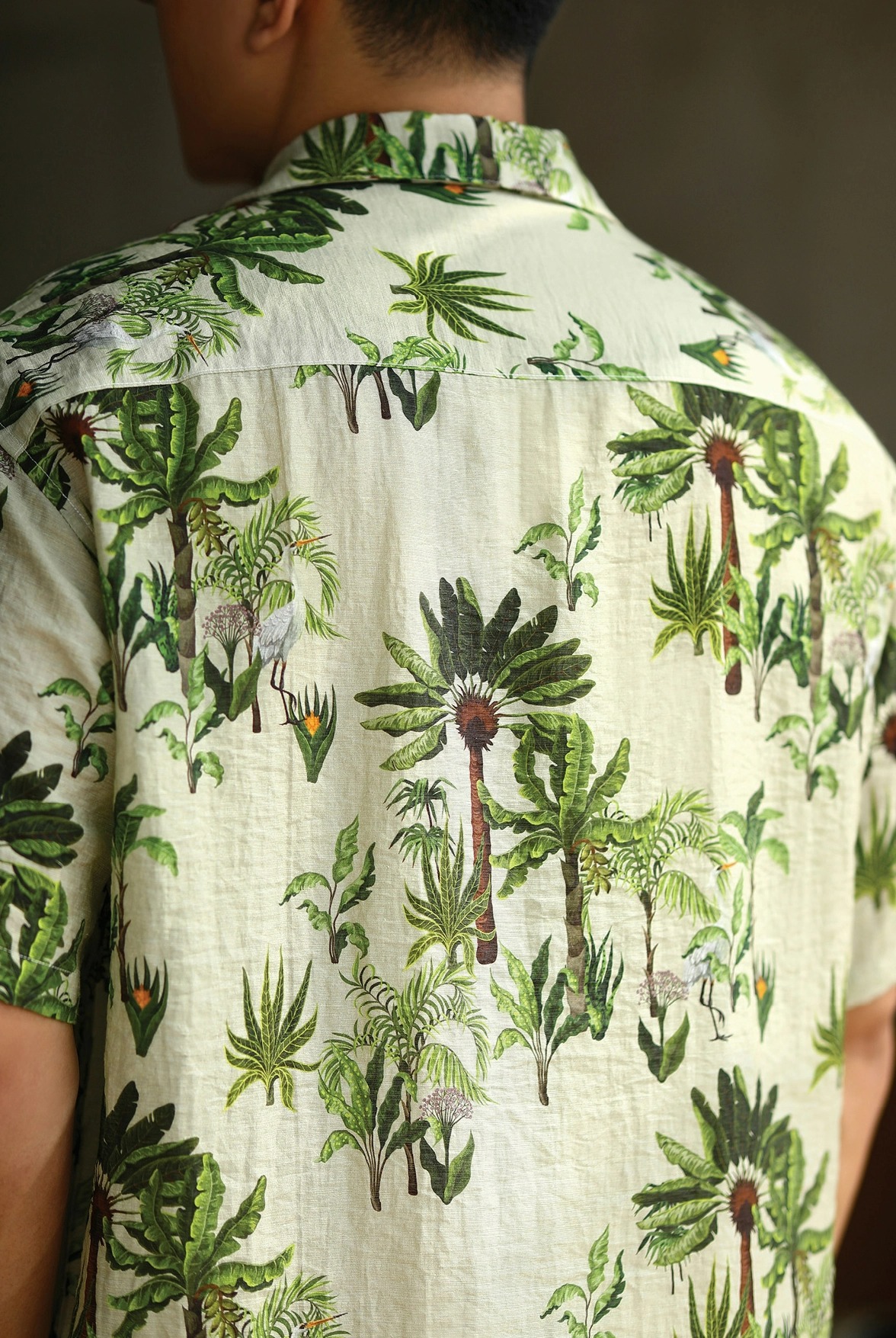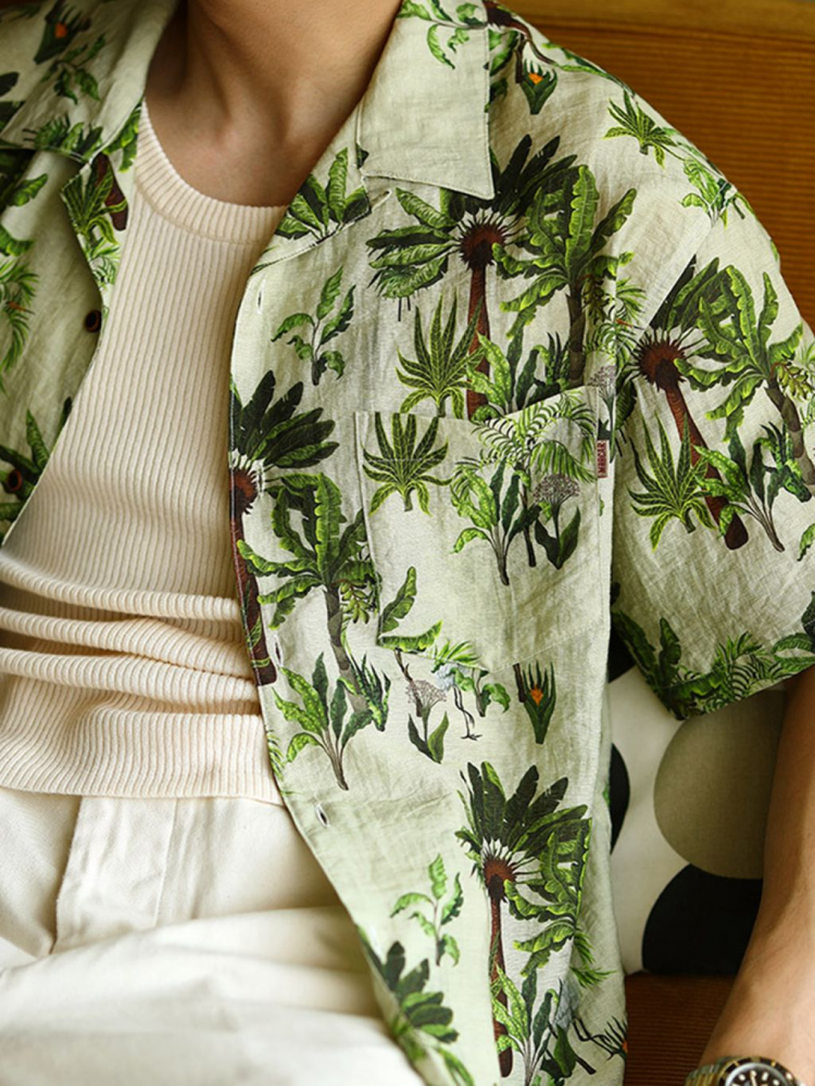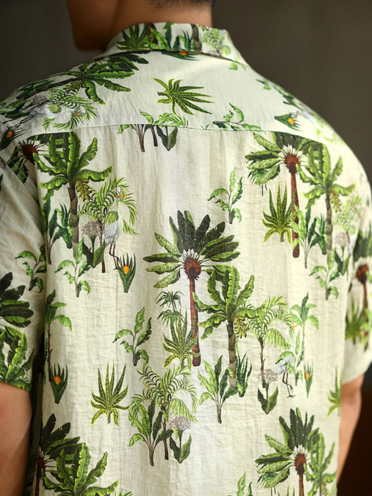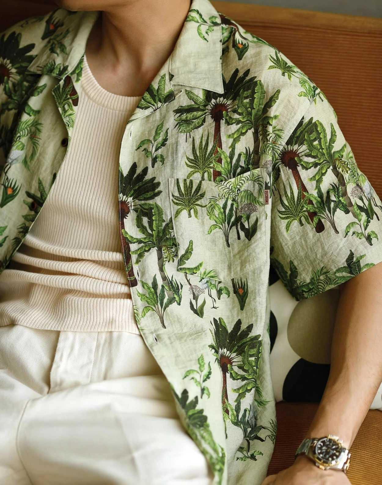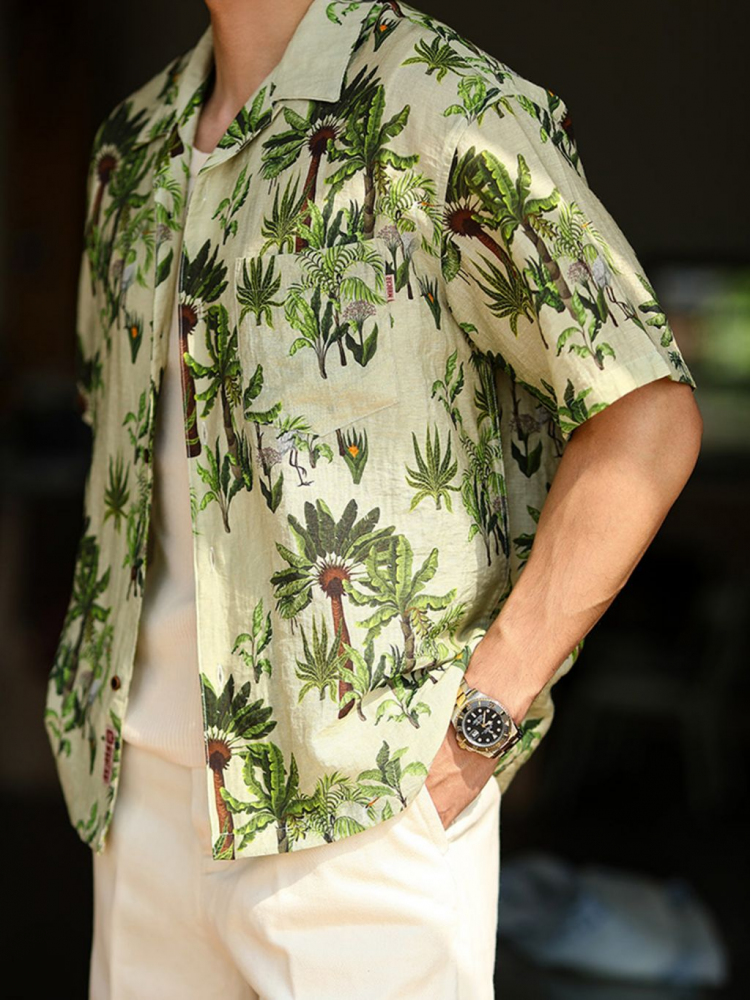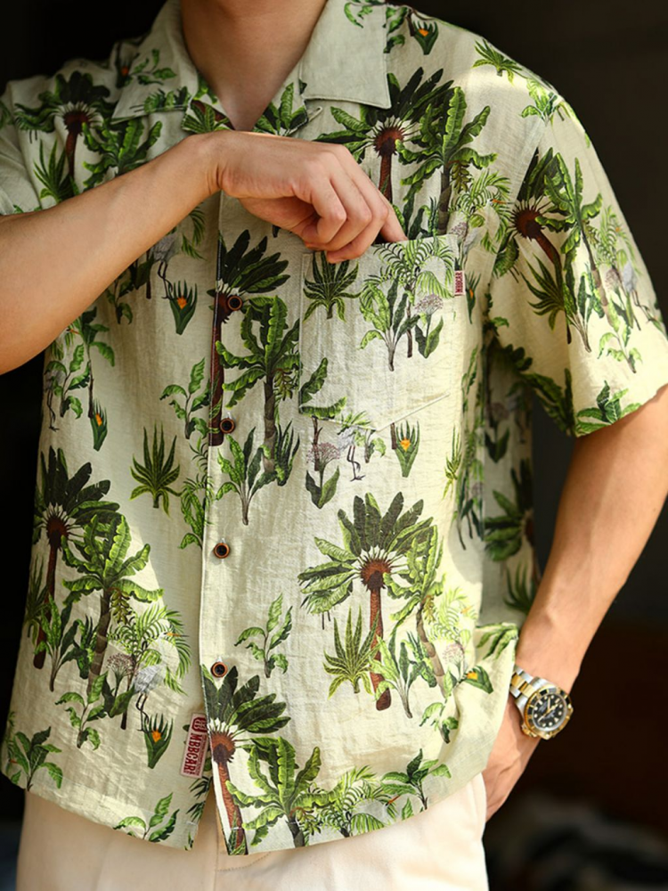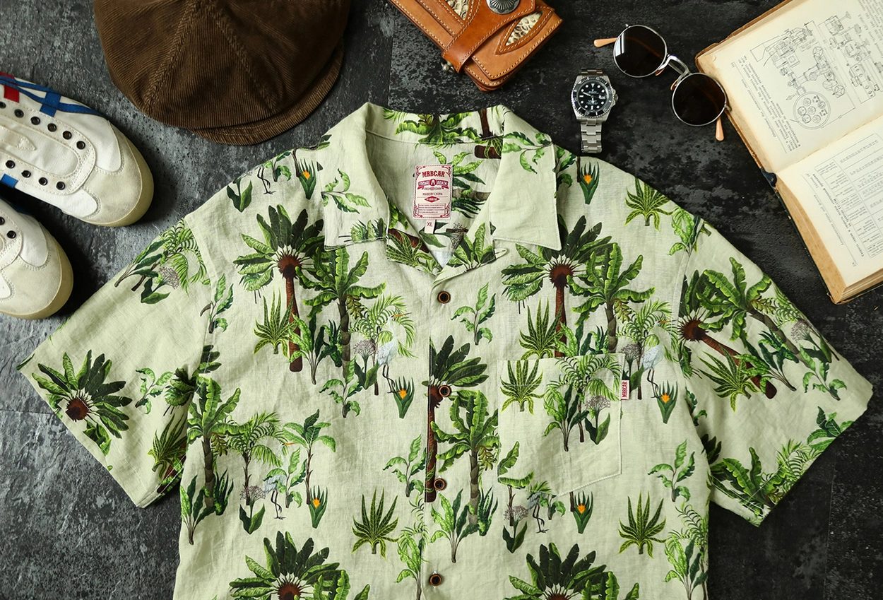 [엠비비카] 아마바나나 그래픽 쿠바 넥 하와이안 스타일 반팔 셔츠