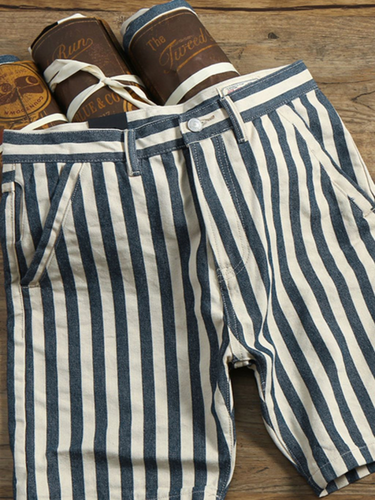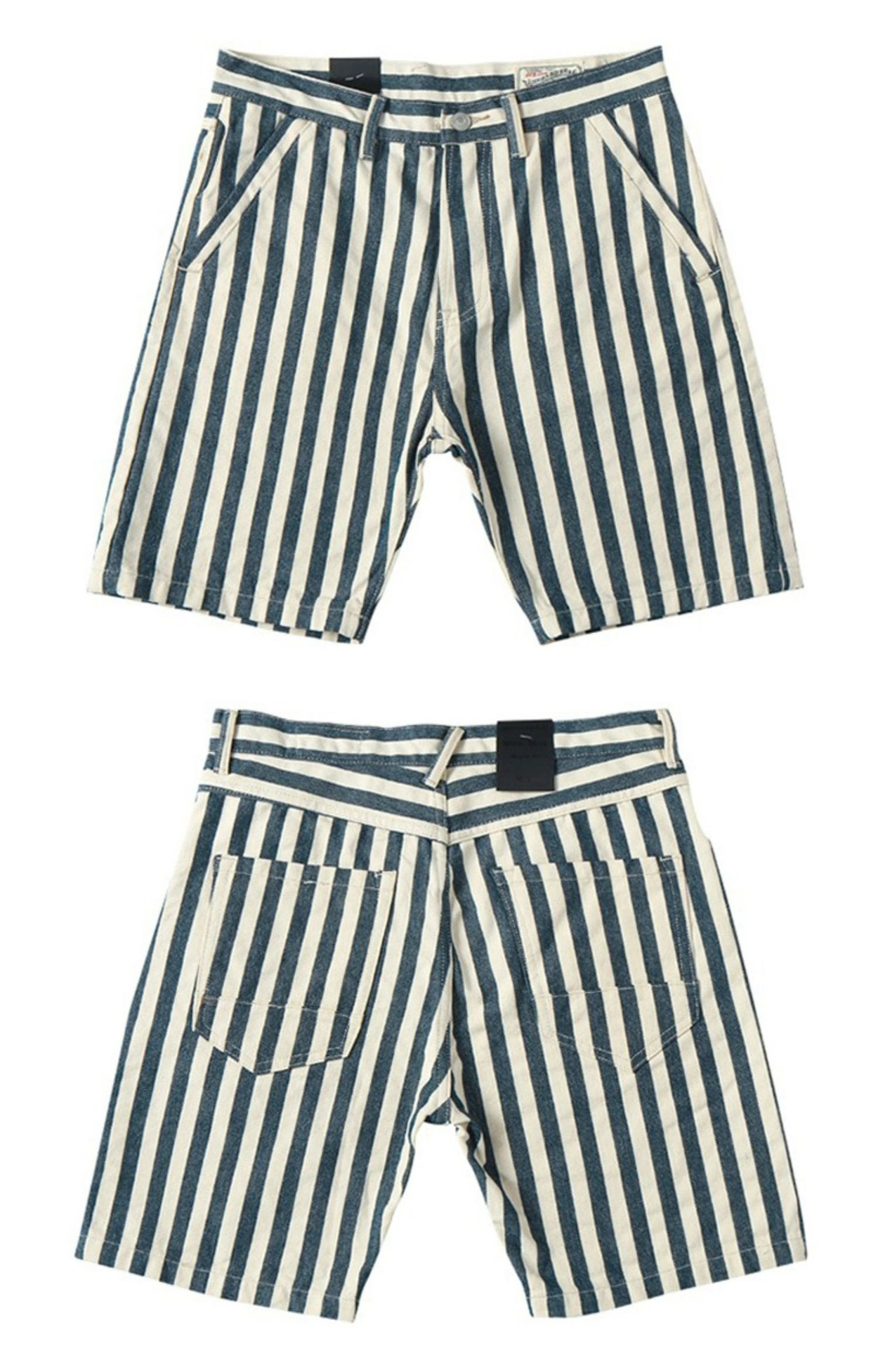 [GDDQ] 화이트 스트라이프 패턴 캔버스 반바지 쇼츠