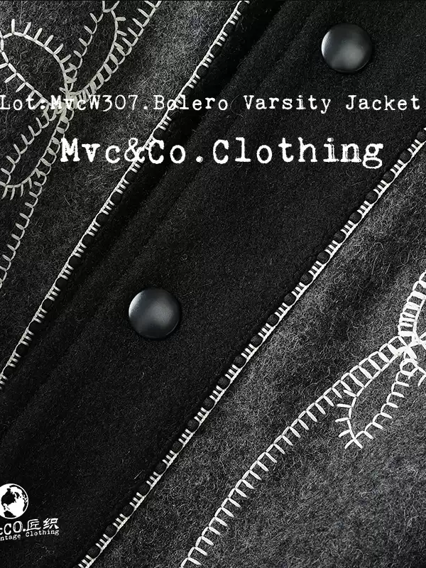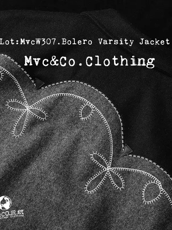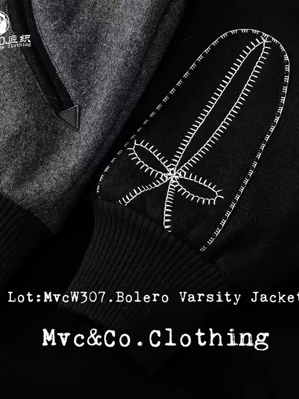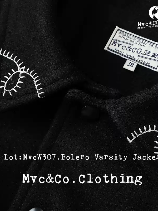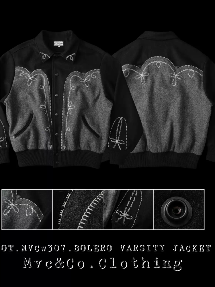 울 멜턴 위로 흐르는 볼레로 스티치, 조용한 서부의 결을 품은 MVCW307 바시티 자켓.