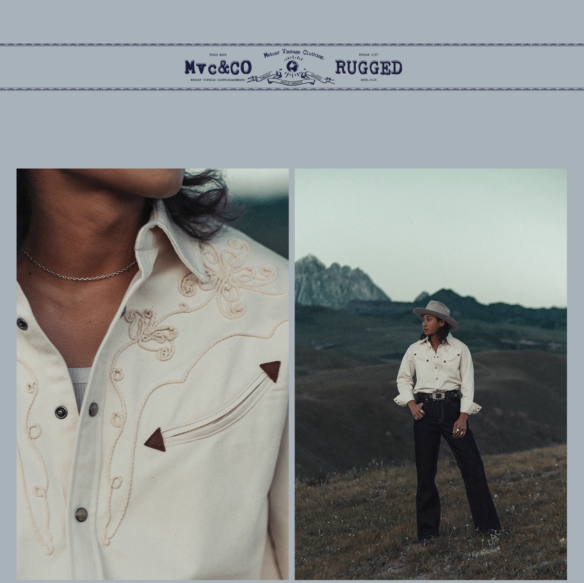 • 스타일: 클래식 웨스턴 × 공예적 입체 자수 셔츠