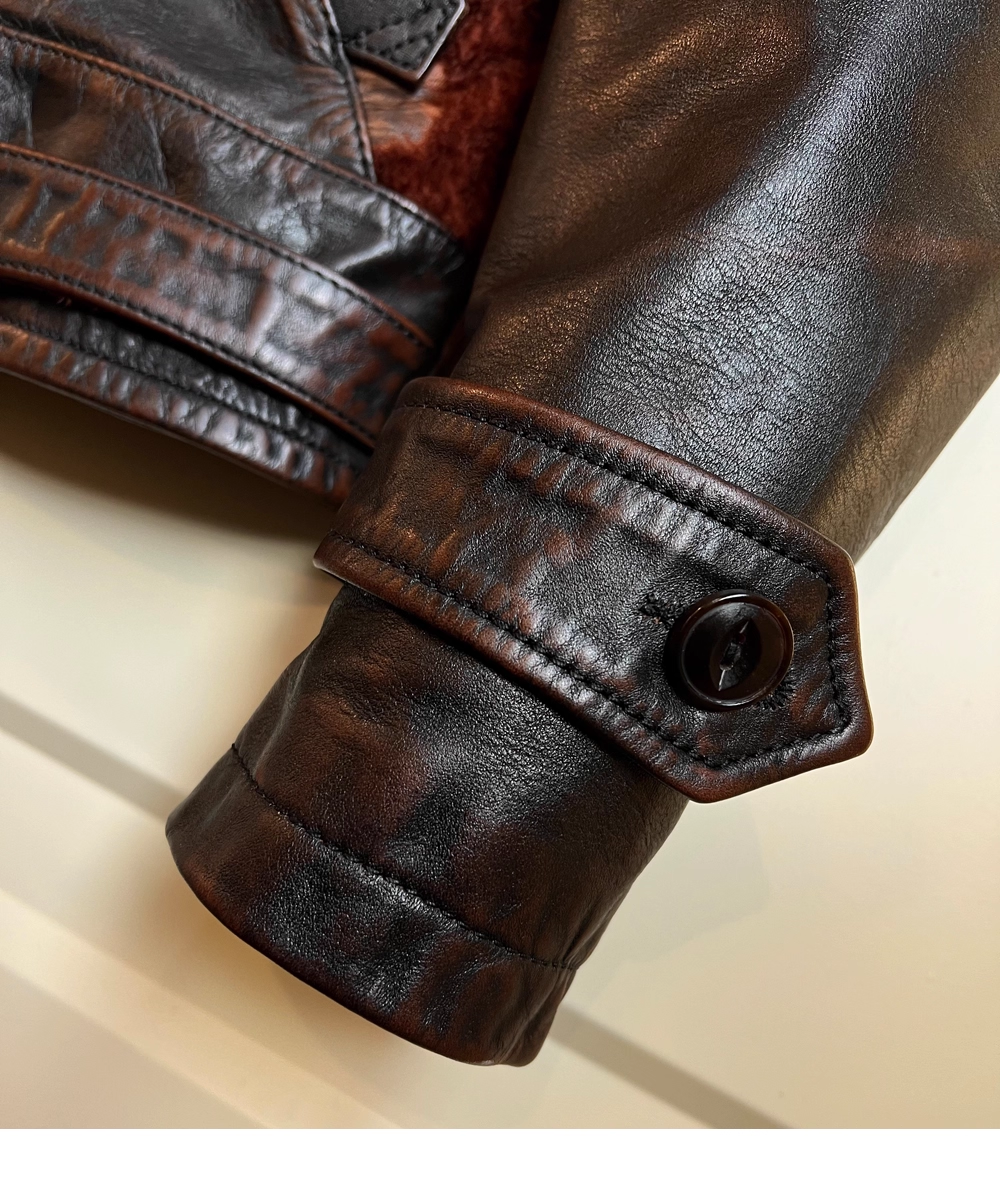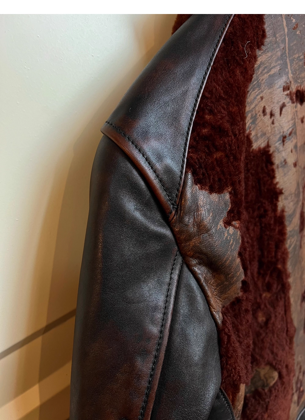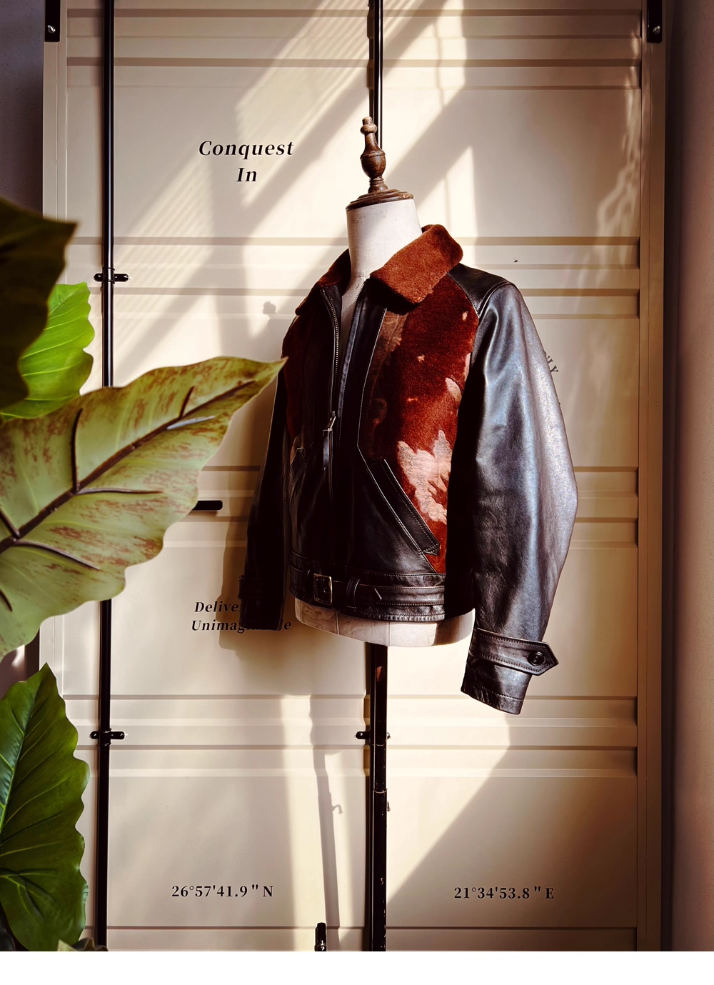 • 시어링 퍼(양털) × 헤어온 카우하이드 패널 조합