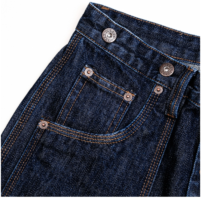 셀비지 데님은 고품질 면 소재를 전통적인 직조 방식으로 짜내어, 세밀하고 견고한 조직감을 지닌 원단입니다.