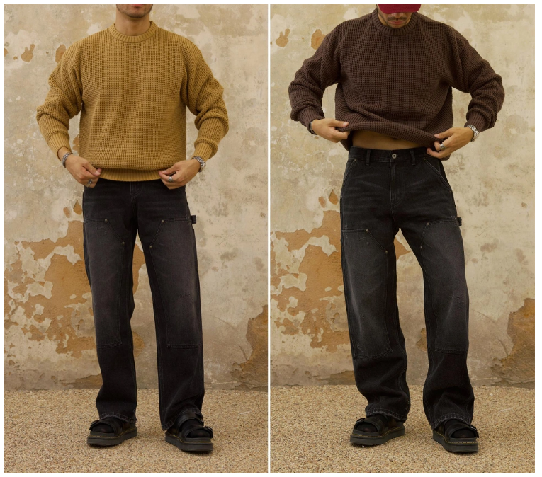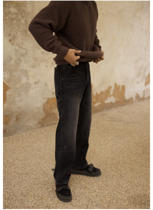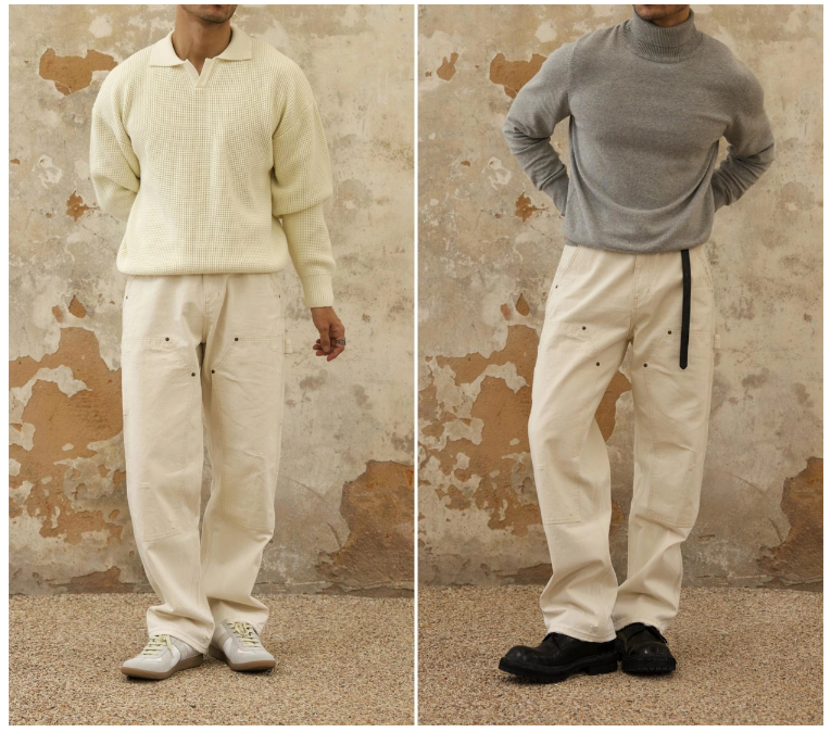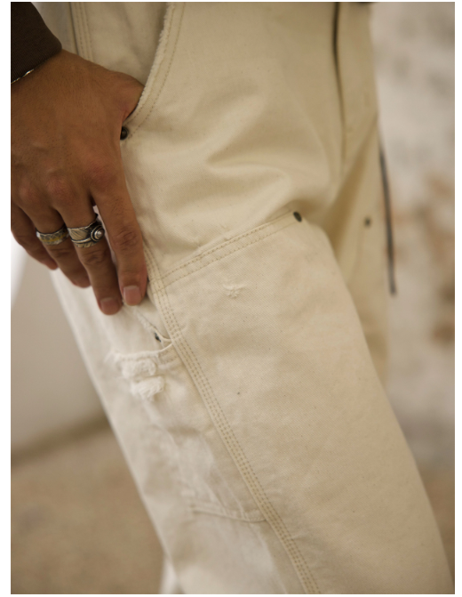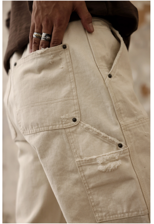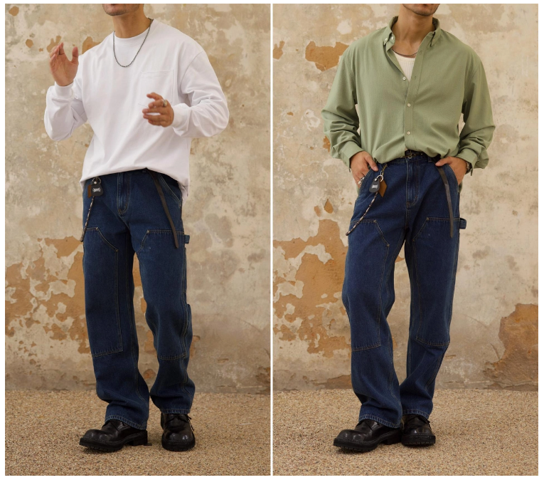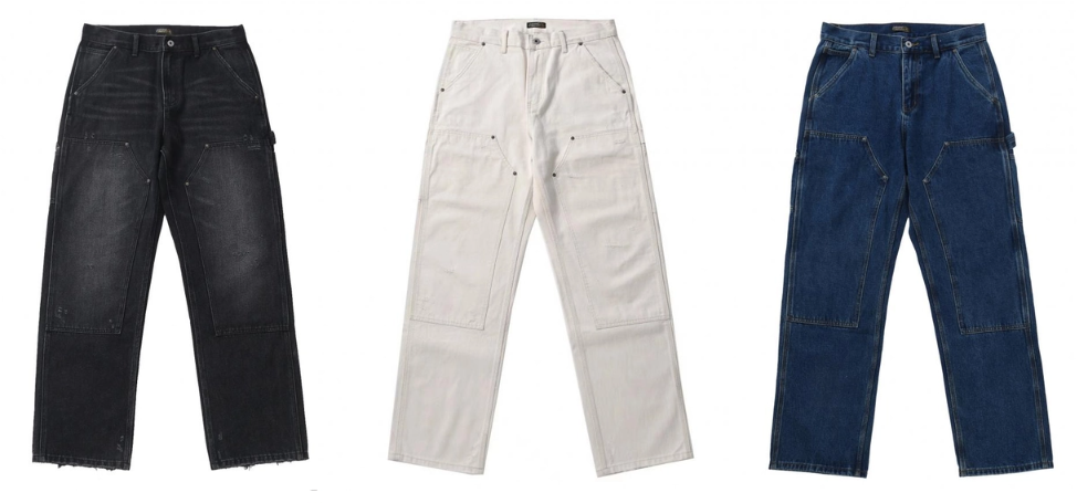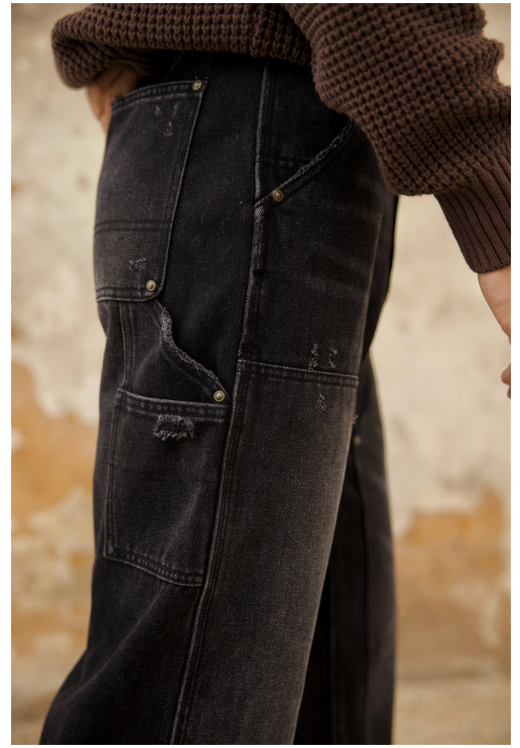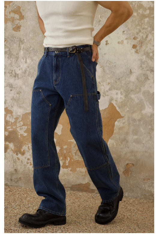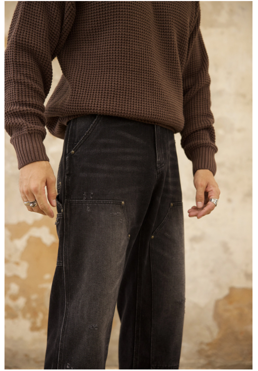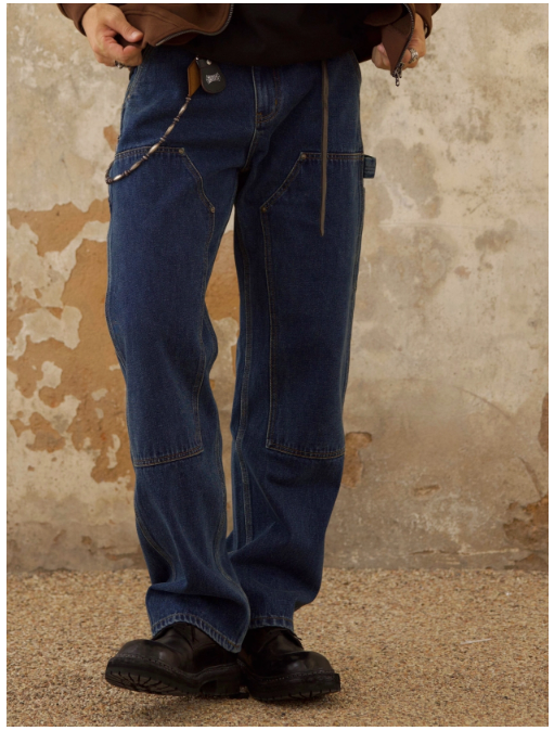 Chaimi-Double knee destroyed denim pants