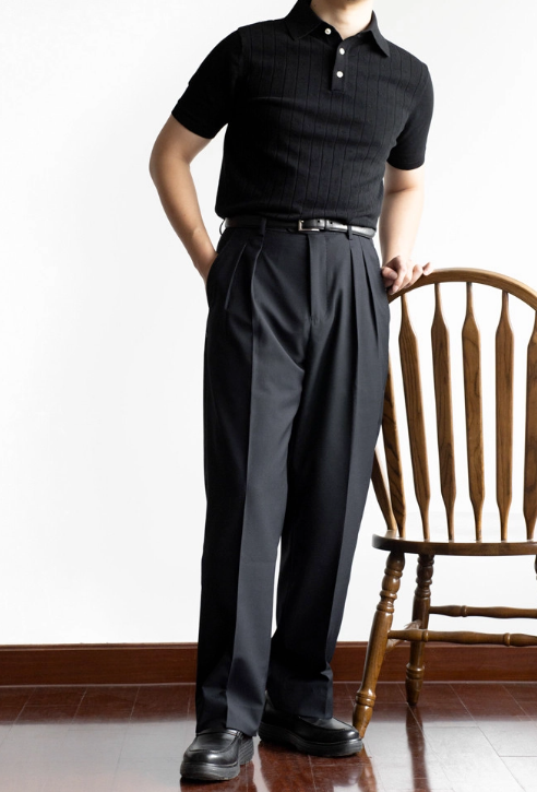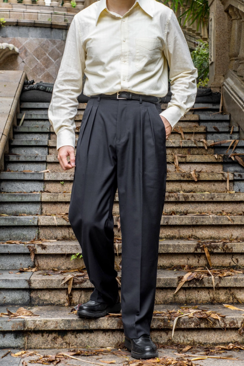 [태시앤코] 와이드 더블 플리츠 포인트 팬츠
