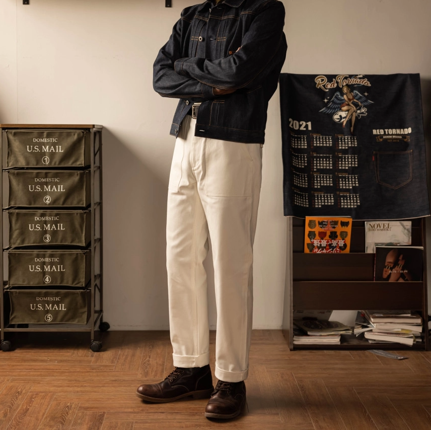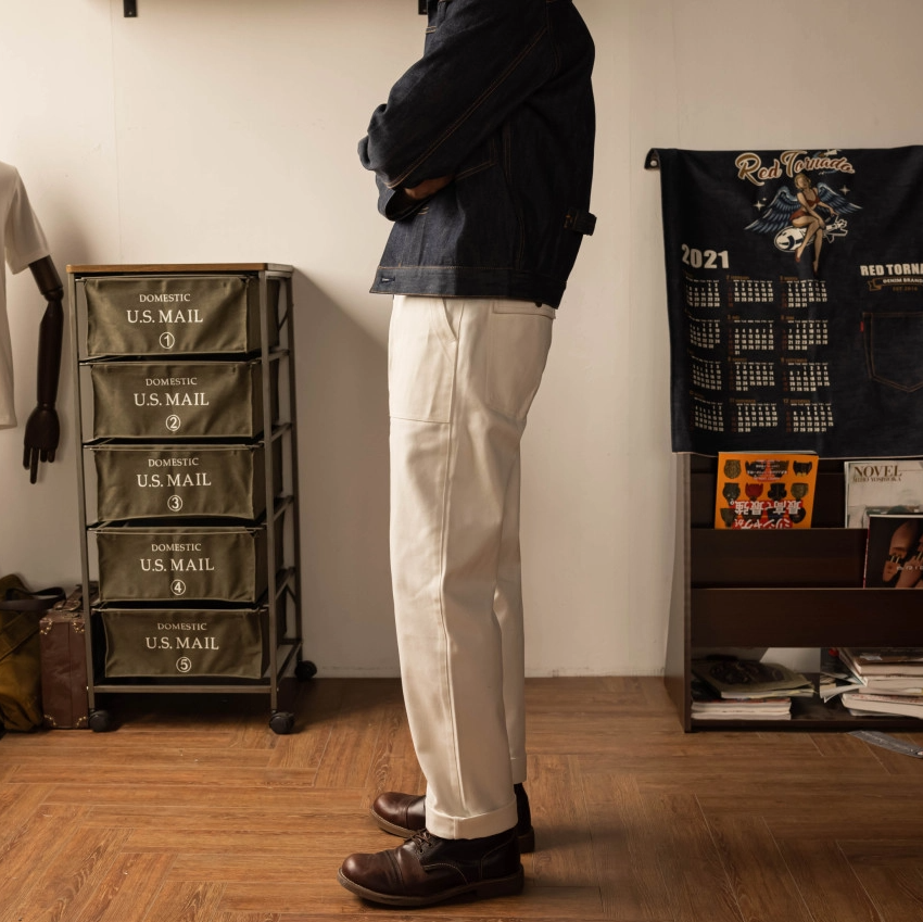 [레드토네이도] 화이트 퍼티그 디테일 팬츠