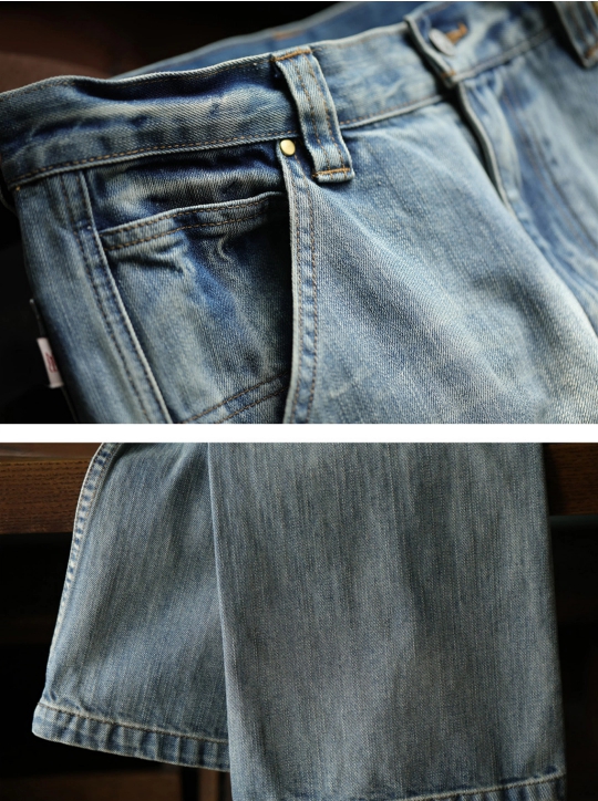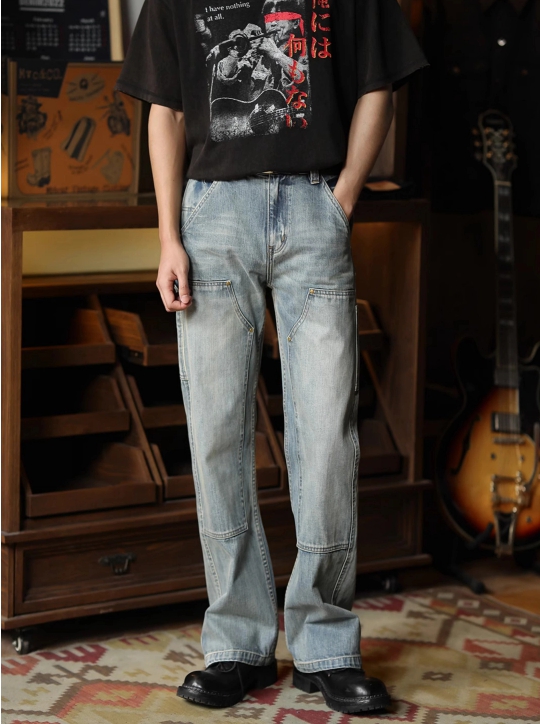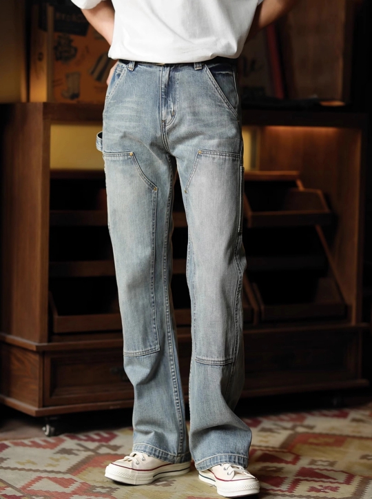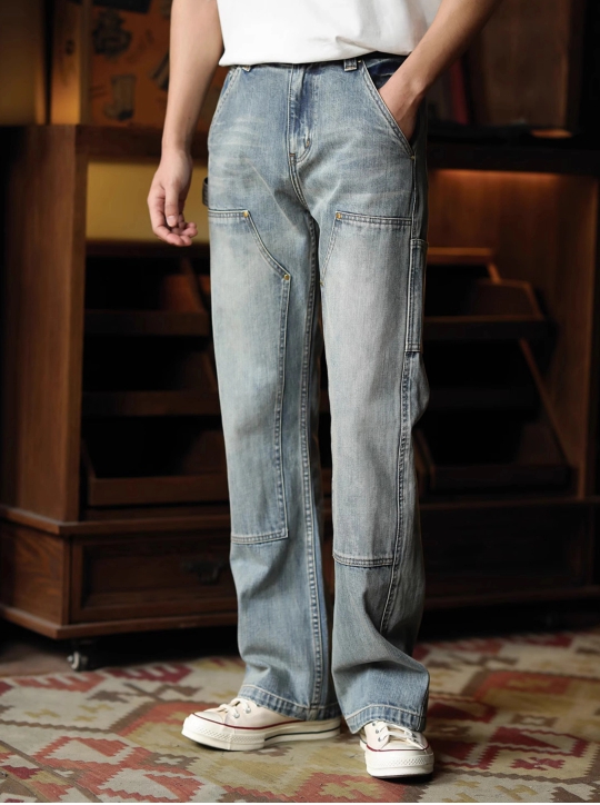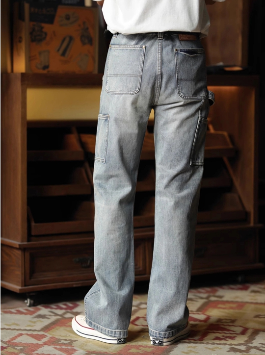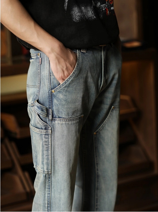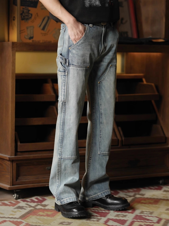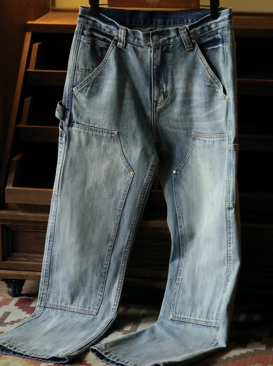 빈티지한 워싱 컬러와 카펜터 디테일이 어우러진 워크웨어 무드의 데님 팬츠입니다.