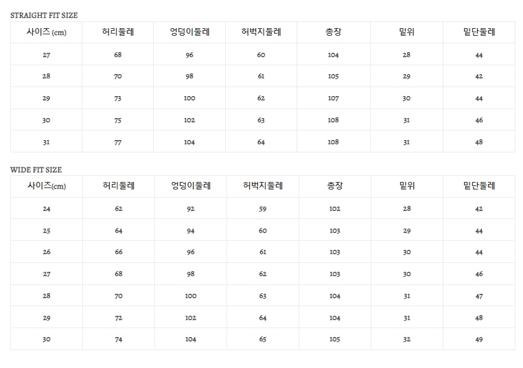 스트레이트 핏과 와이드 핏 두 가지 버전으로 제작되어 취향에 맞는 실루엣을 선택하실 수 있습니다.