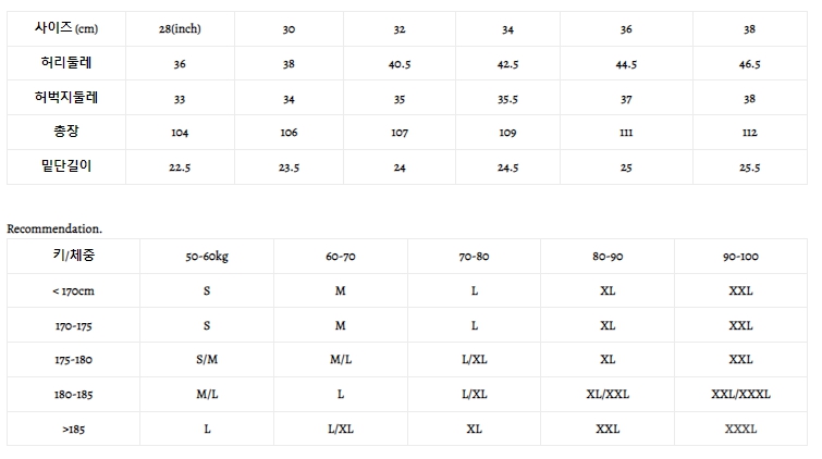 사이즈 추천
