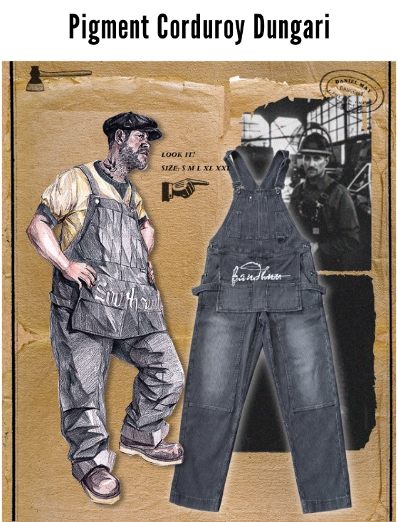 [사우스 소울] 피그먼트 코듀로이 디테일 던가리