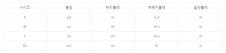 ※ 사이즈는 측정 방법에 따라 ±3cm 오차가 있을 수 있습니다.
