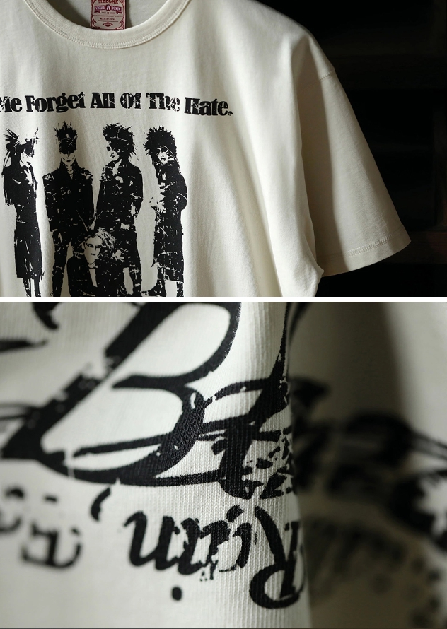 전설적인 일본 록 밴드 X JAPAN의 실크스크린 이미지가 프린트된 레트로 감성의 클래식 티셔츠입니다.