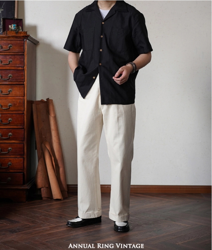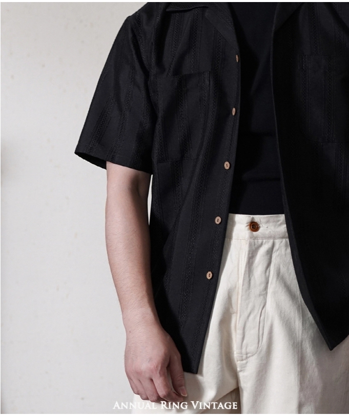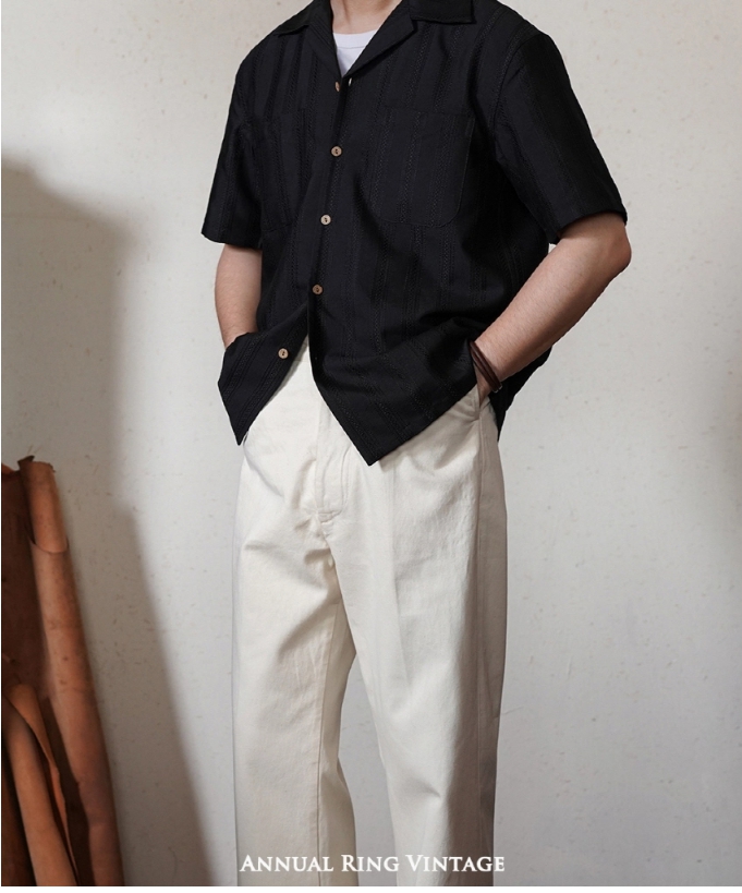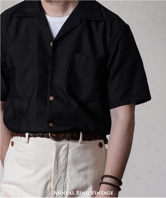 [애뉴얼링] 쿠바 넥 빈티지 스트라이프 포인트 하와이안 셔츠