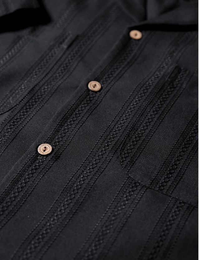 오리지널 디자인의 자카드 스트라이프 원단으로 제작된 클래식 쿠바넥 셔츠입니다.