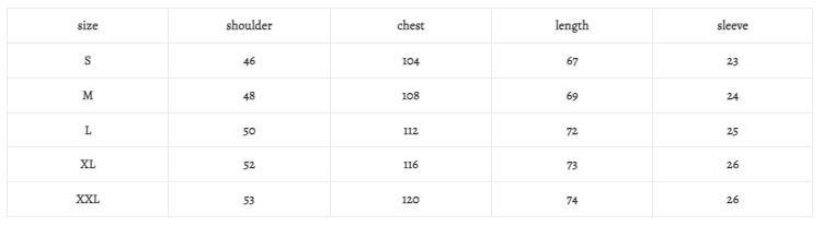 sizeshoulderchestlengthsleeve