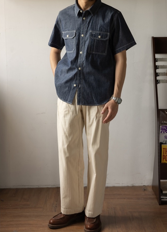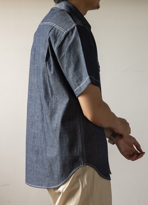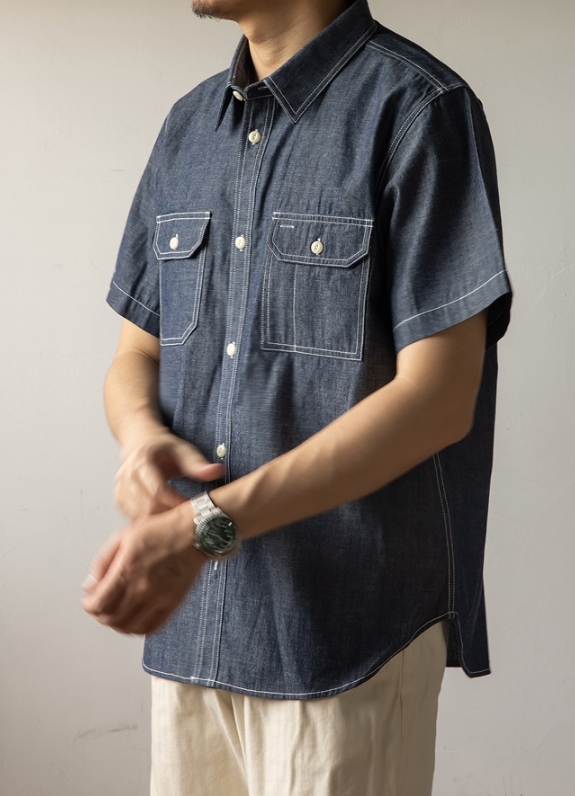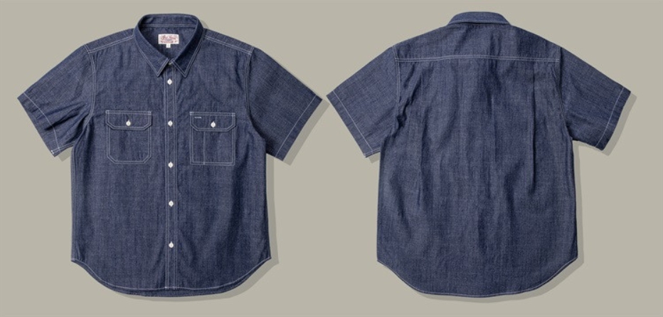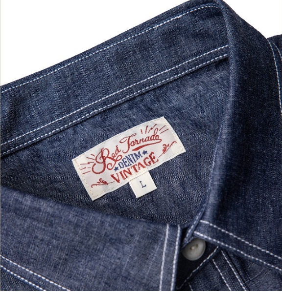 [Red Tornado] chambray half Shirt