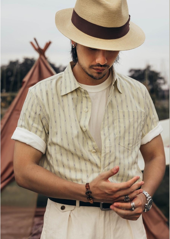 [Red Tornado] Jacquard half Shirt