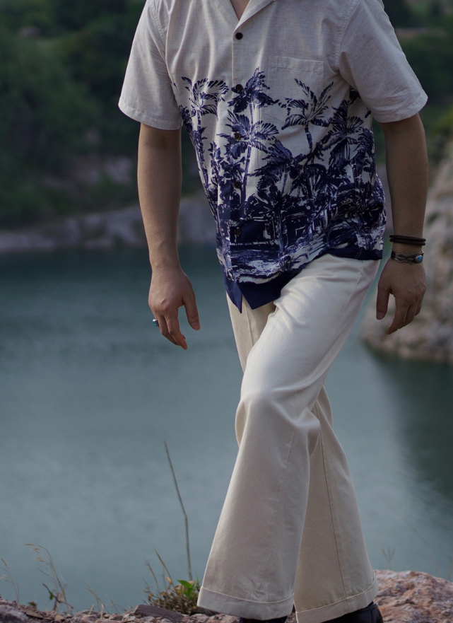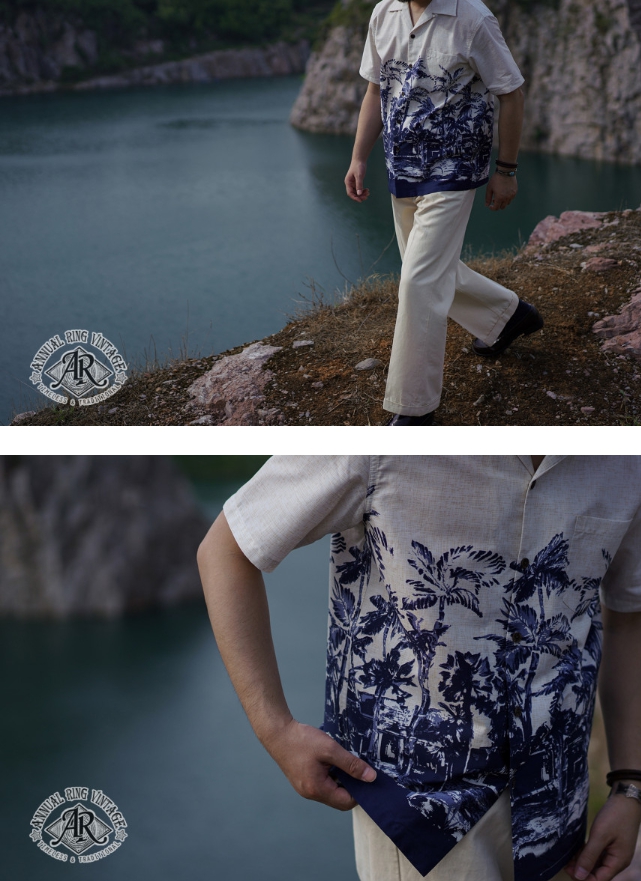 [애뉴얼링] 팜 프린트 포인트 알로하셔츠