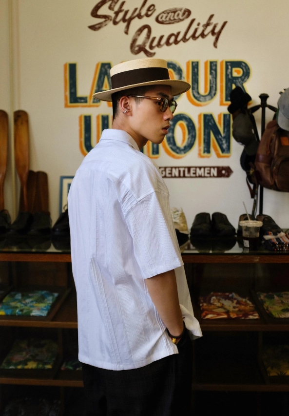 LAVER UNION-White Jacquard Hawaiian Shirt LU591