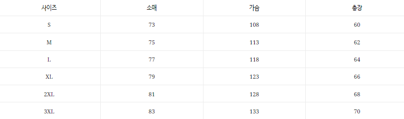 사이즈소매가슴총장