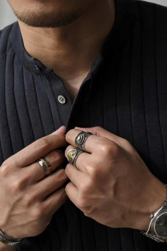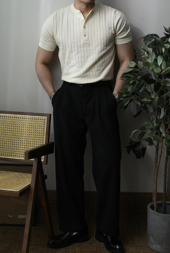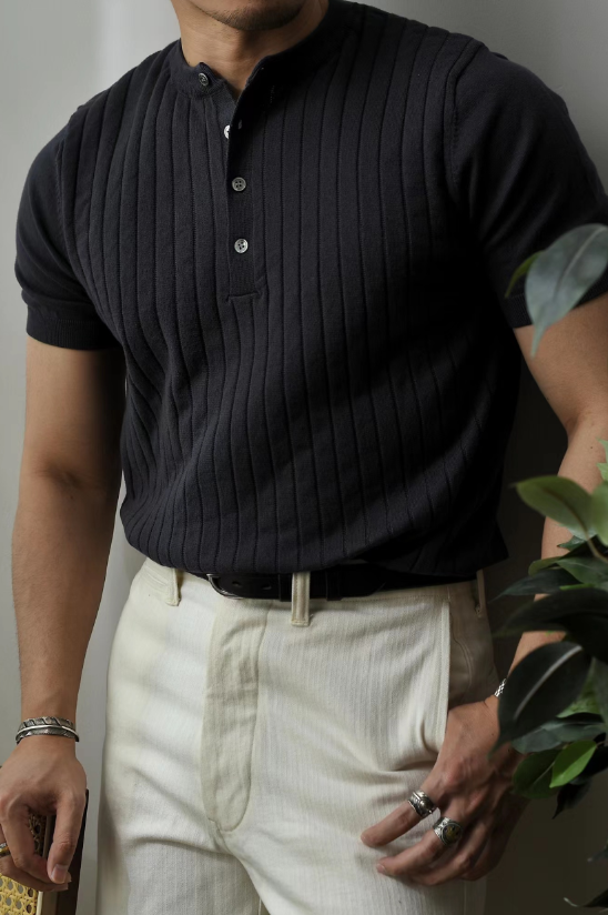 Chaimi-Short sleeve henley neck knit