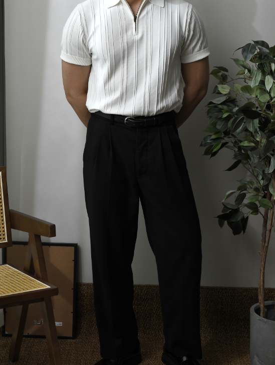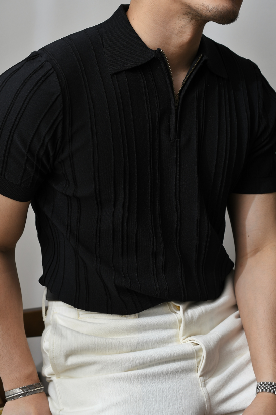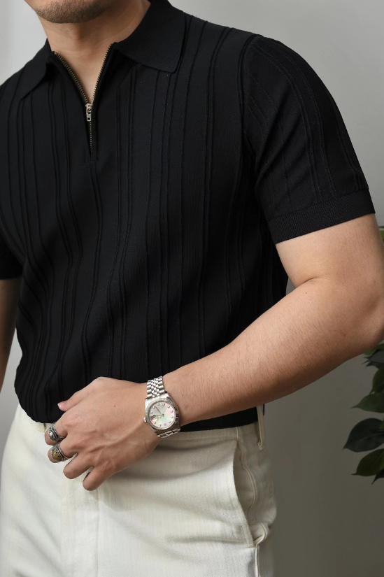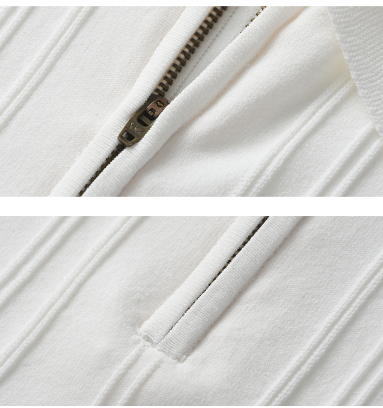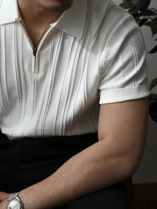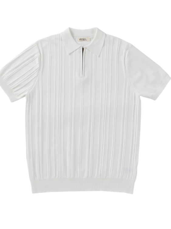 Chaimi-Striped polo half zip-up knit