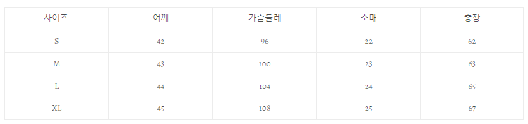 사이즈 어깨가슴둘레소매총장