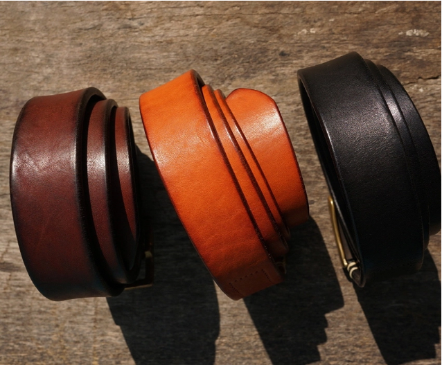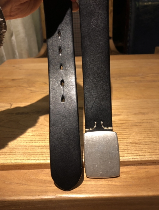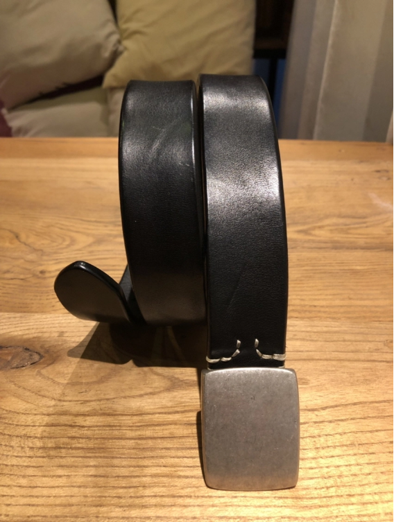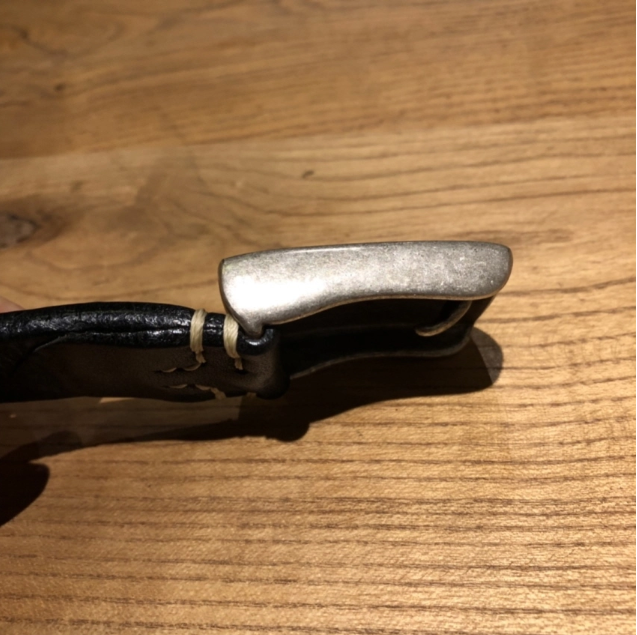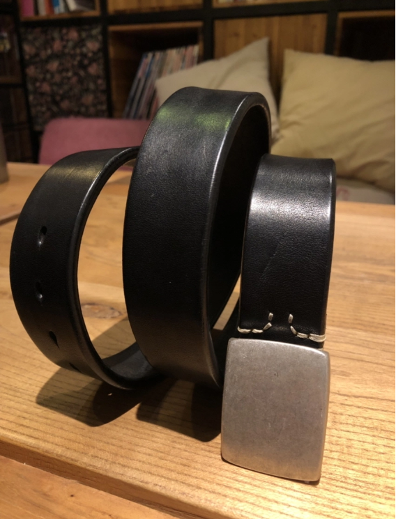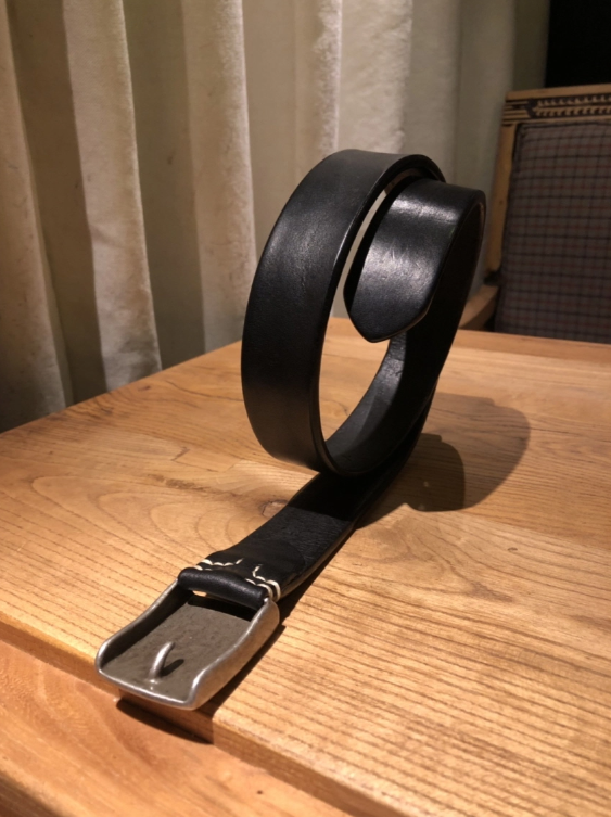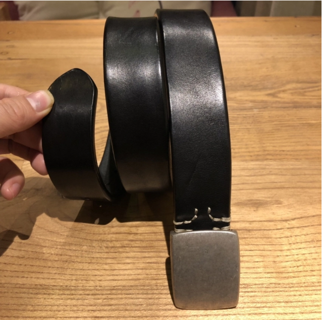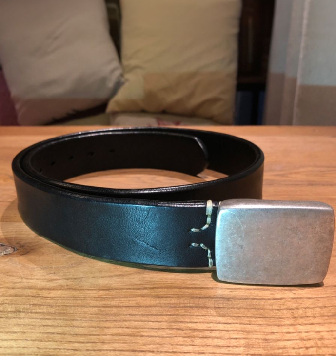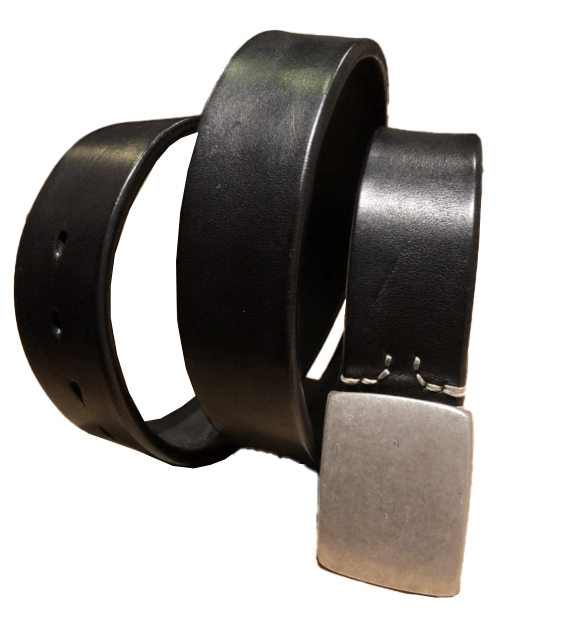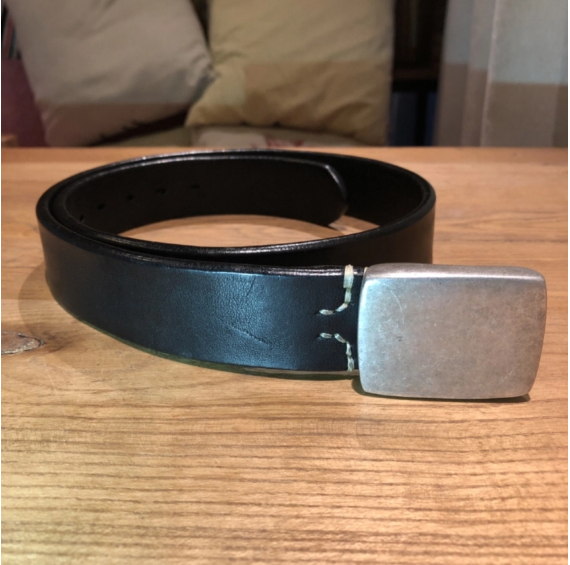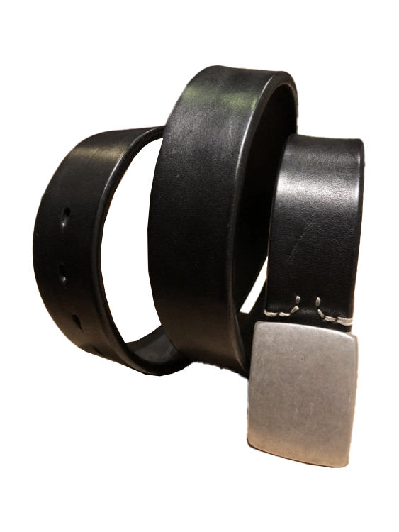 Silver buckle saddle leather belt (black)