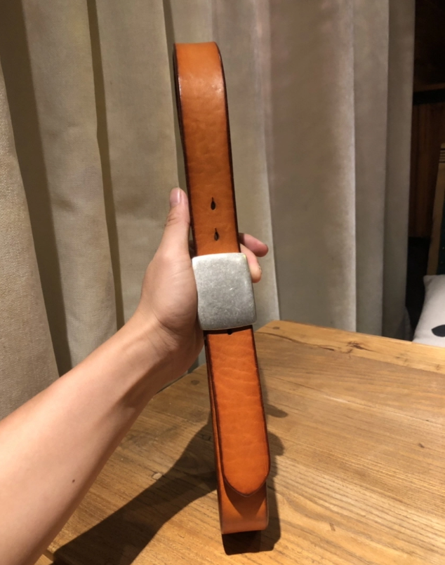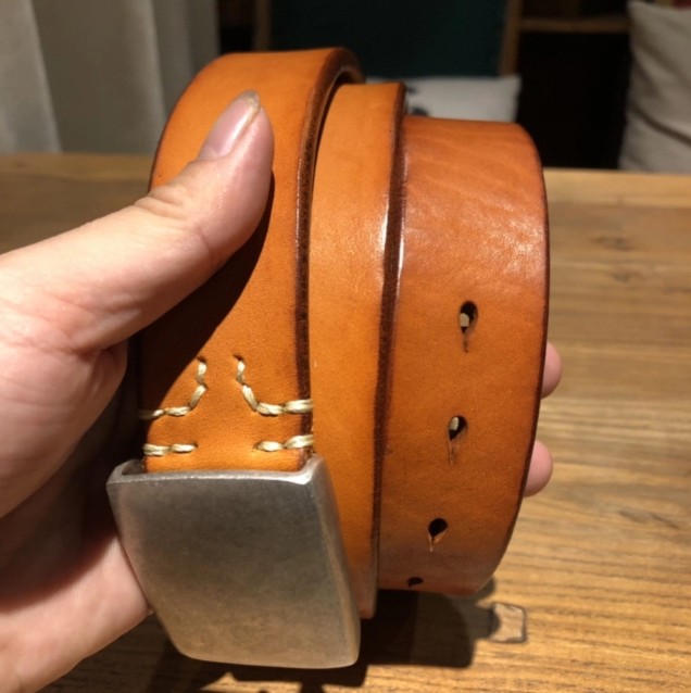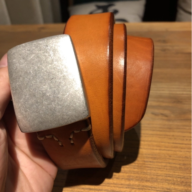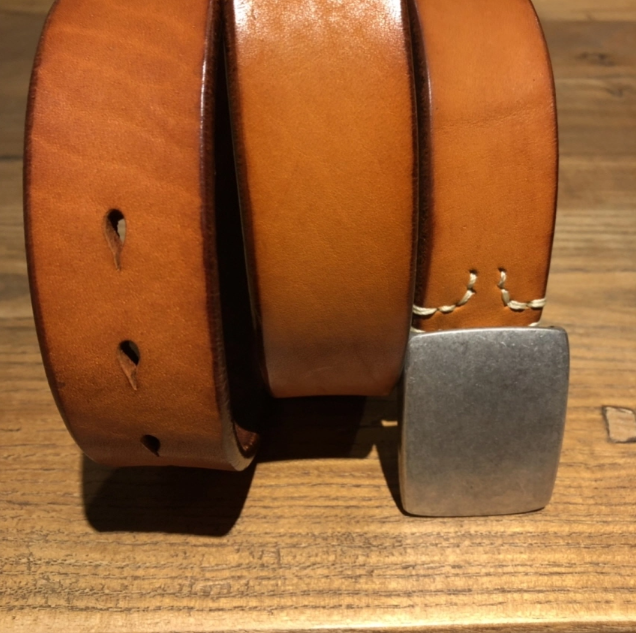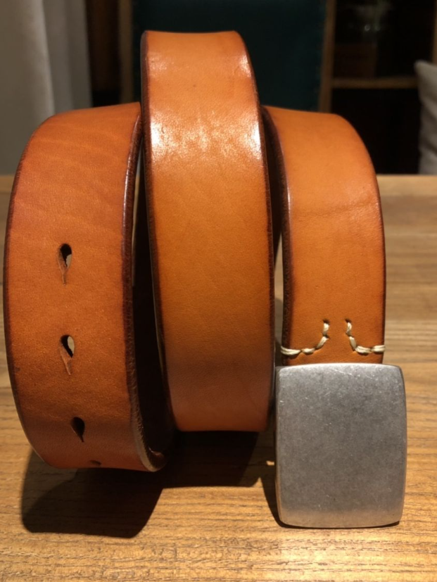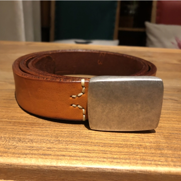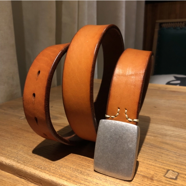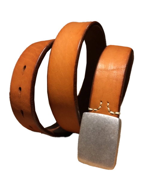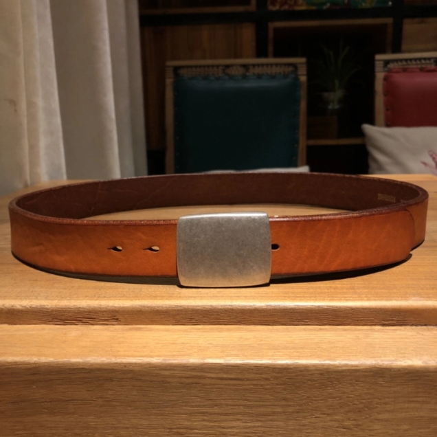 Silver Buckle Saddle Leather Belt (Light Brown)