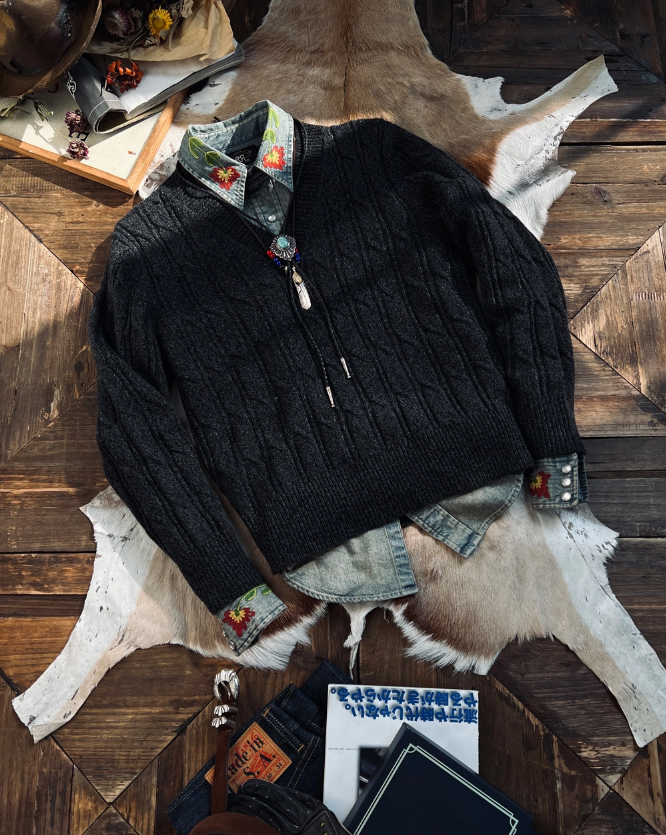 CIDU - V-넥 풀오버 울 스웨터
