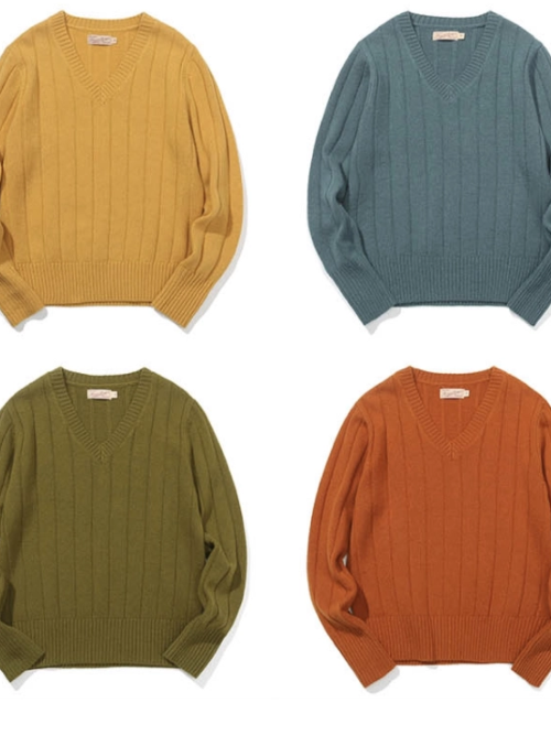 [리메인 클로딩] 브이넥 드롭 니들 스웨터