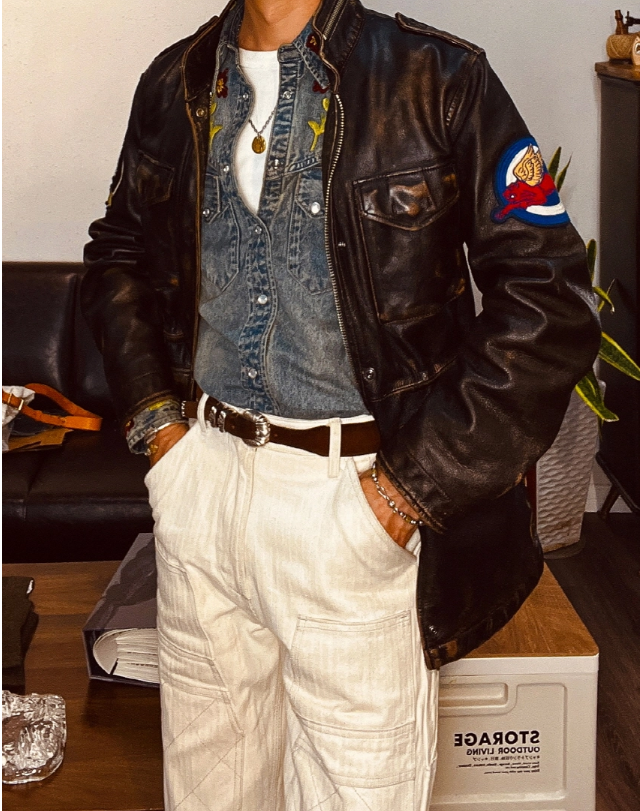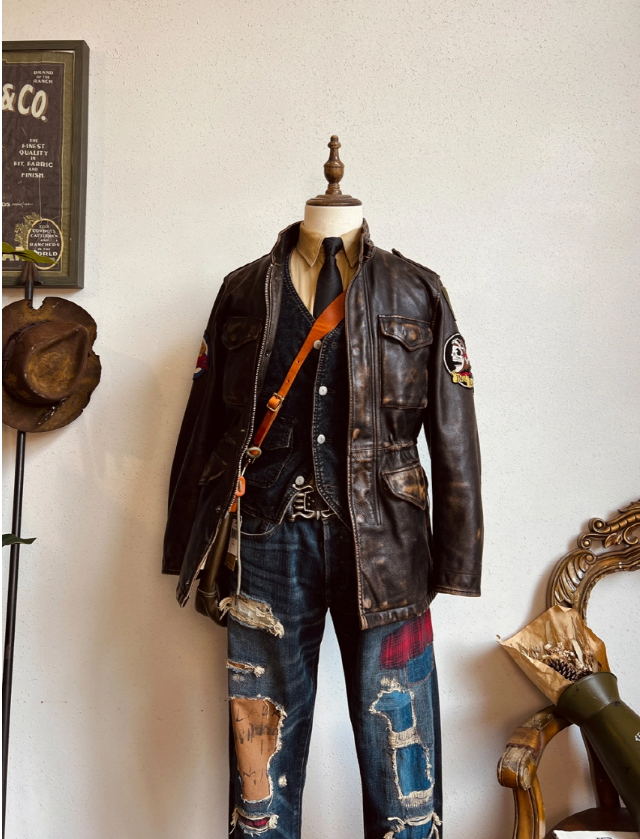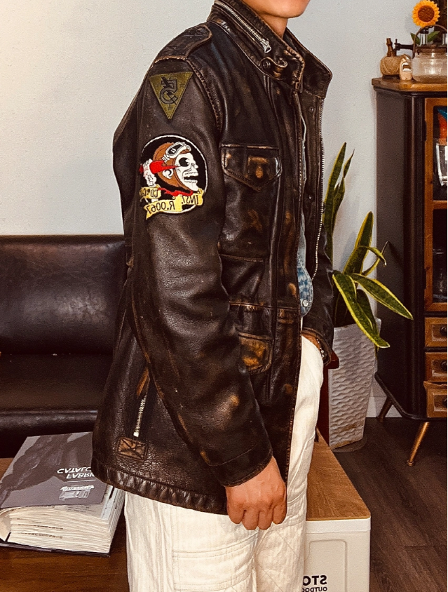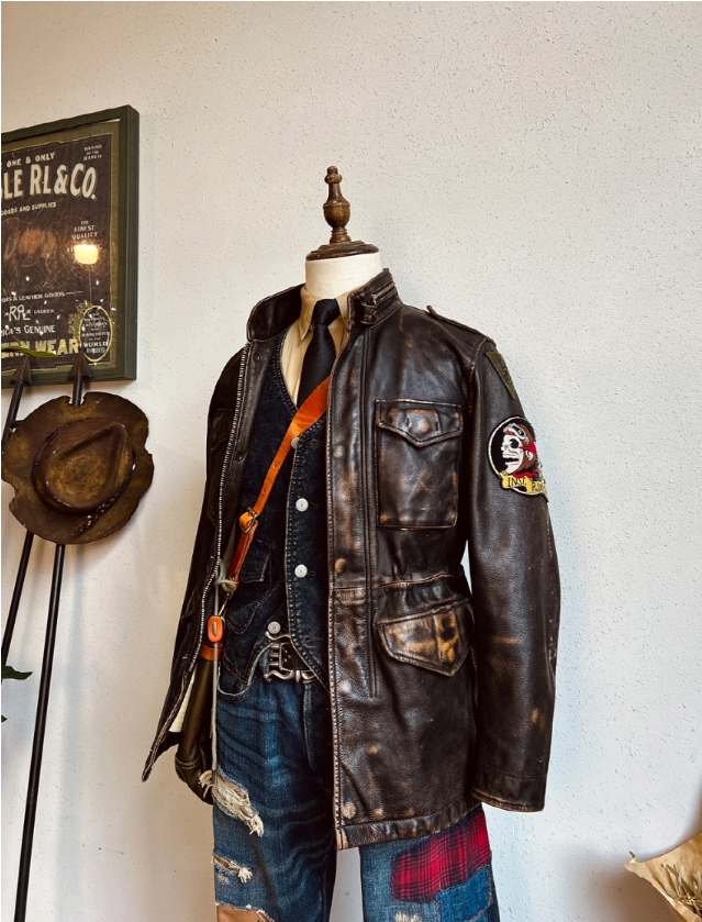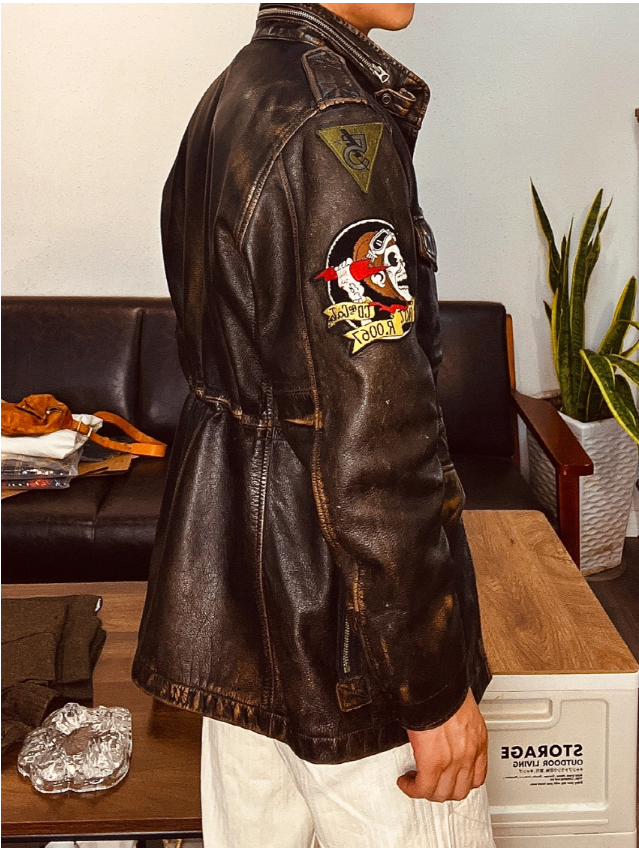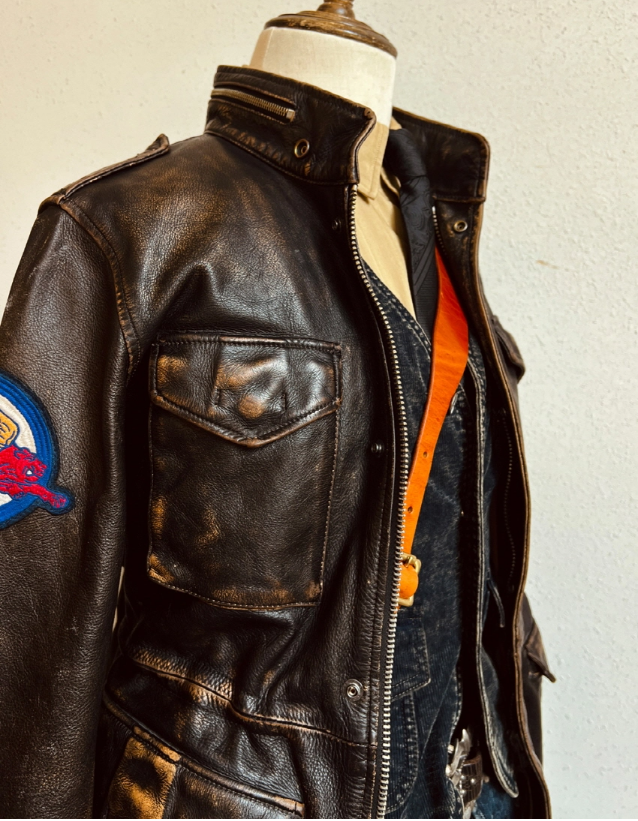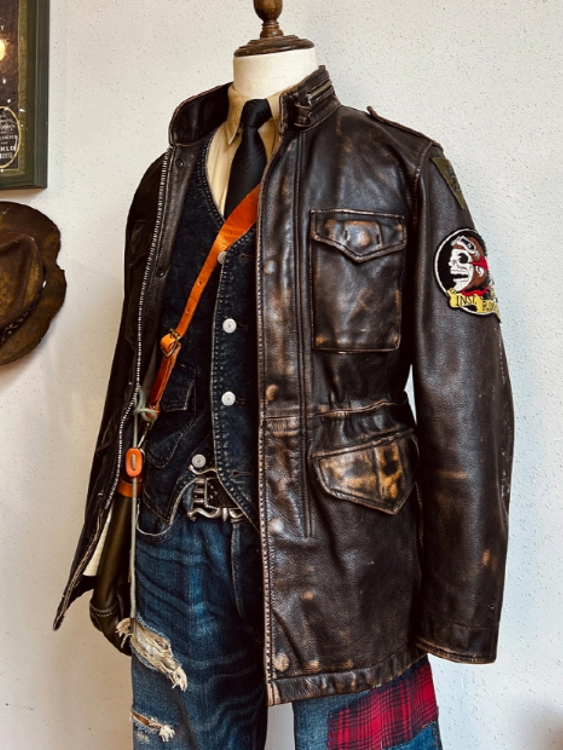 • M-65 디자인을 모티브로 제작된 빈티지 무드의 에이징 소가죽 자켓입니다.