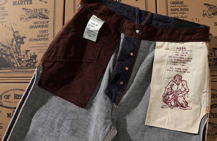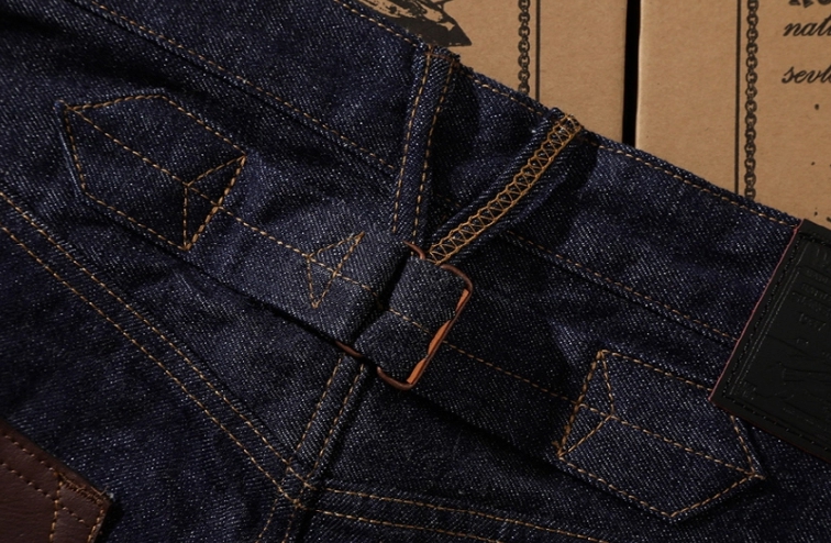 • 뒷주머니는 오일 왁스 처리된 소가죽 플랩이 달린 군복 스타일을 재현했습니다.