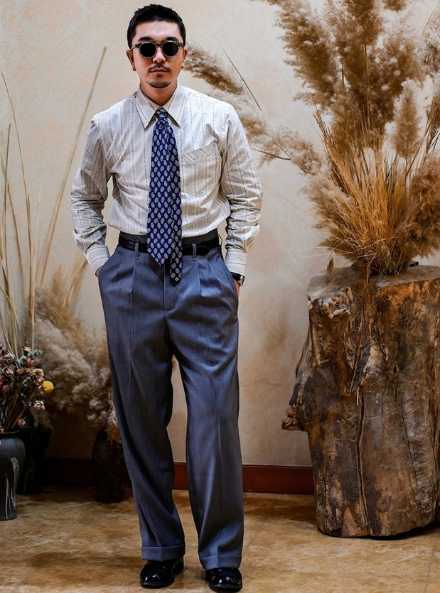 [태시앤코] 자카드 패턴 스트라이프 셔츠