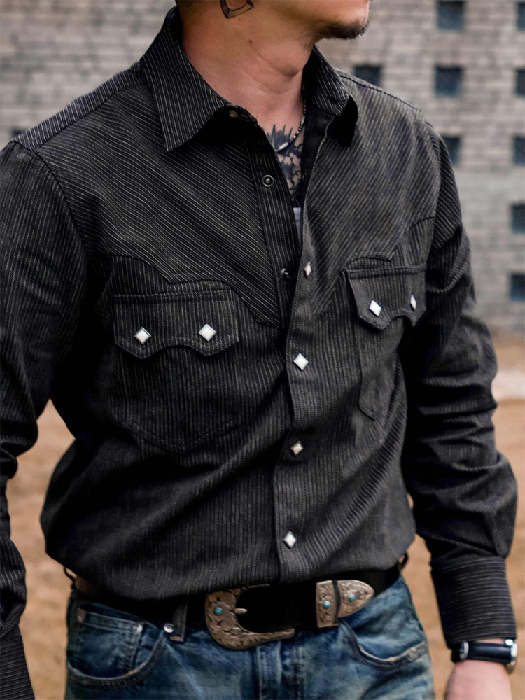 [태시앤코] 웨스턴 무드 자카드 패턴 스트라이프 셔츠