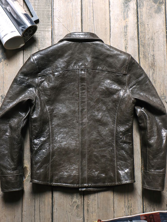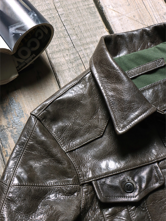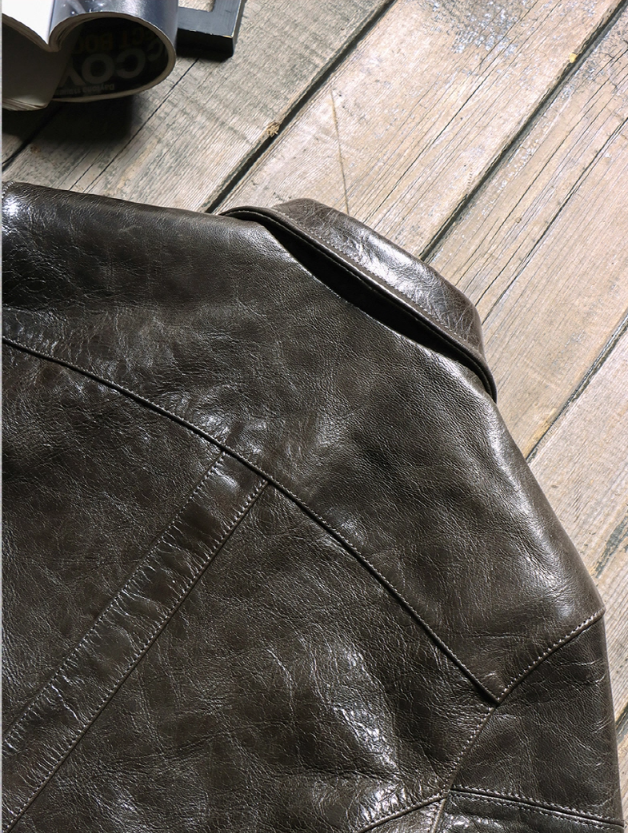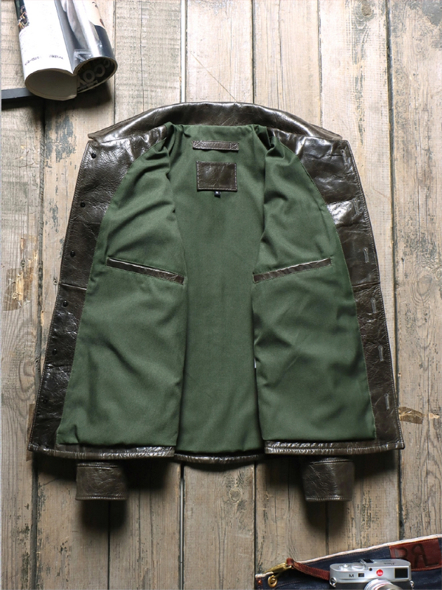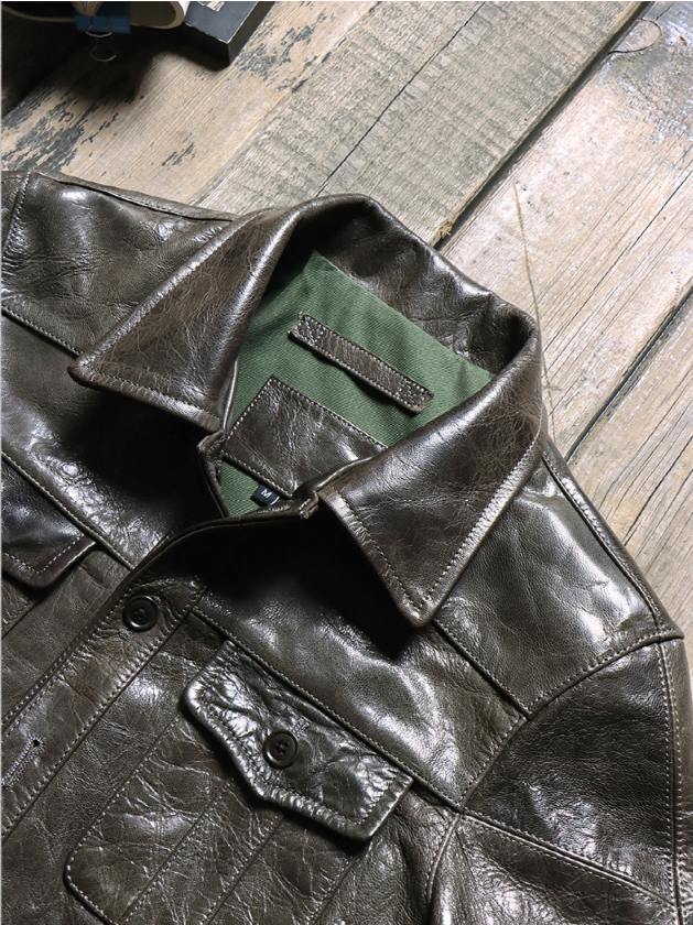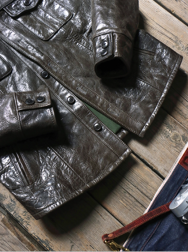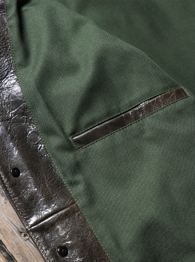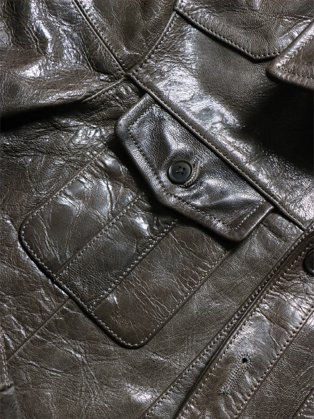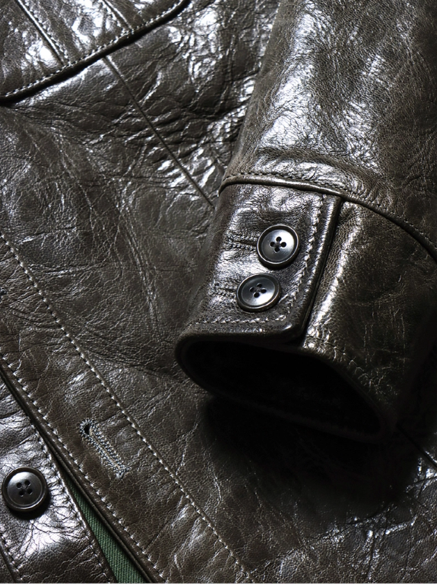 [가석] 올리브 베지터블 디테일 태닝 염소 가죽 자켓