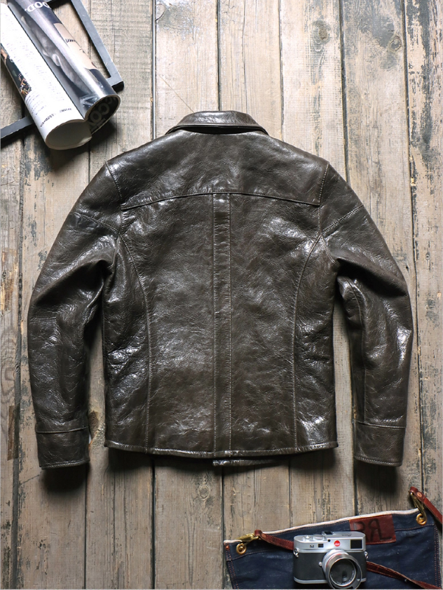 • 이탈리아산 식물성 태닝 처리된 염소 가죽 유광 자켓입니다.