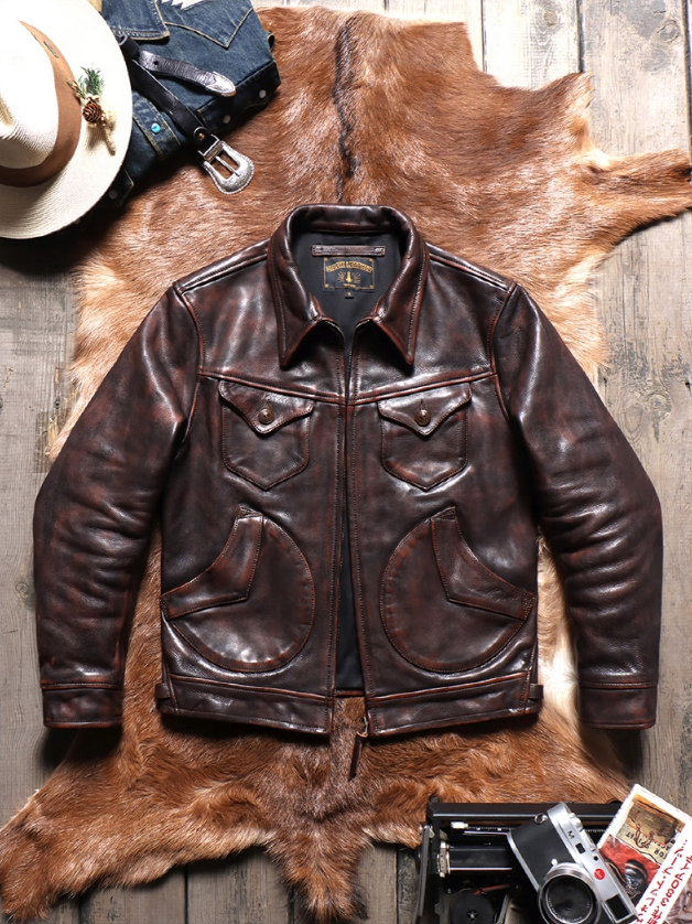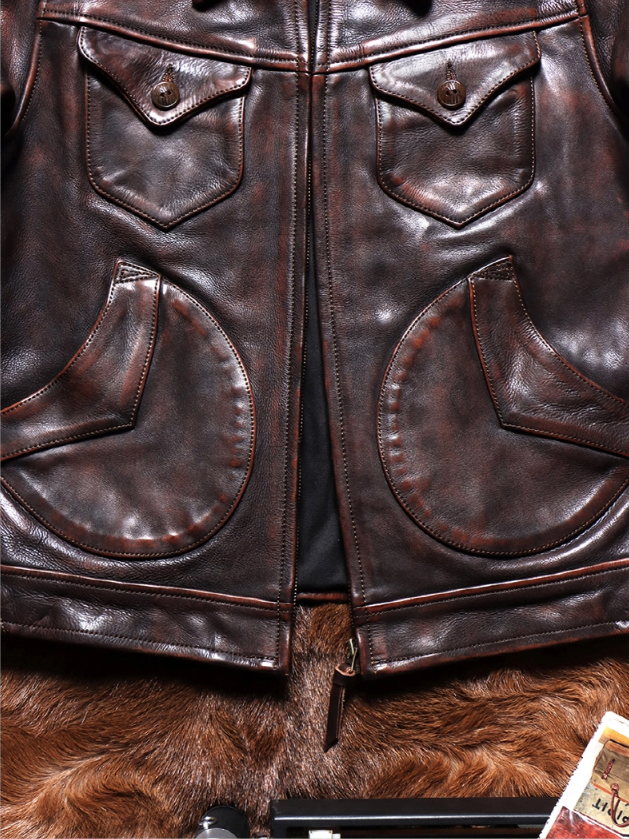• 1.6mm 두께의 빈티지 헤비 워싱 에이징 카우하이드 자켓입니다.