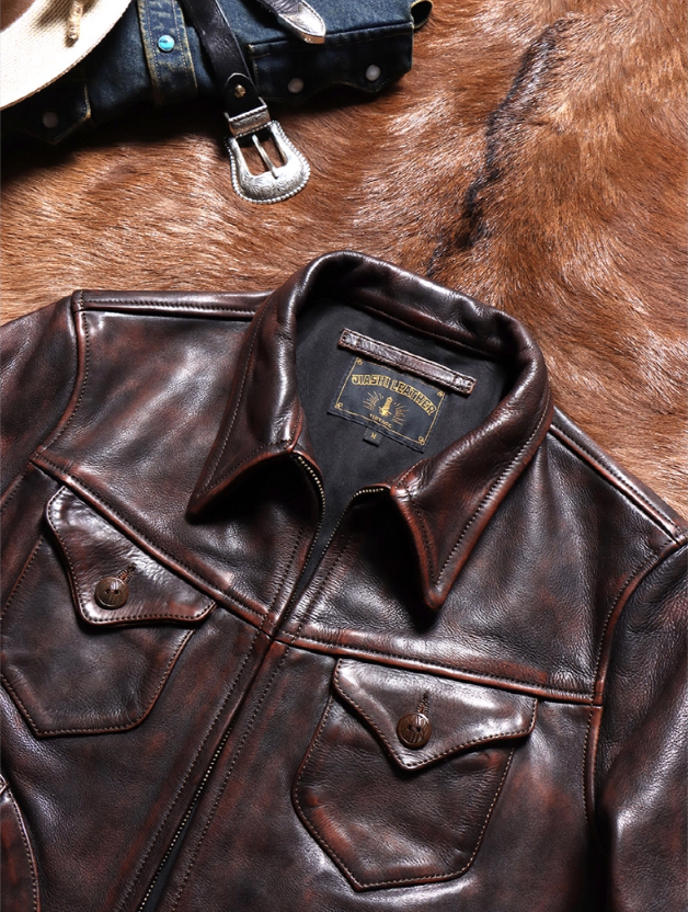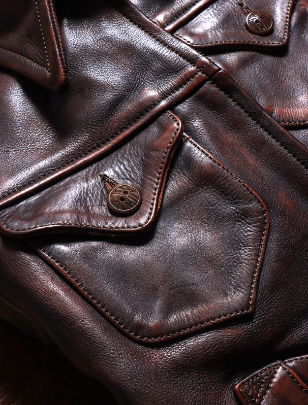 [가석] 1.6mm 빈티지 스타일 헤비 워싱 에이징 디테일 카우하이드 자켓