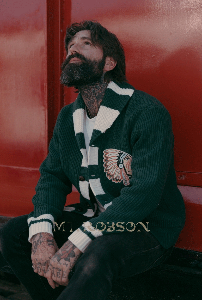• 개성 있는 배색과 인디언 패치 디테일이 돋보이는 헤비 울 스웨터 자켓입니다.